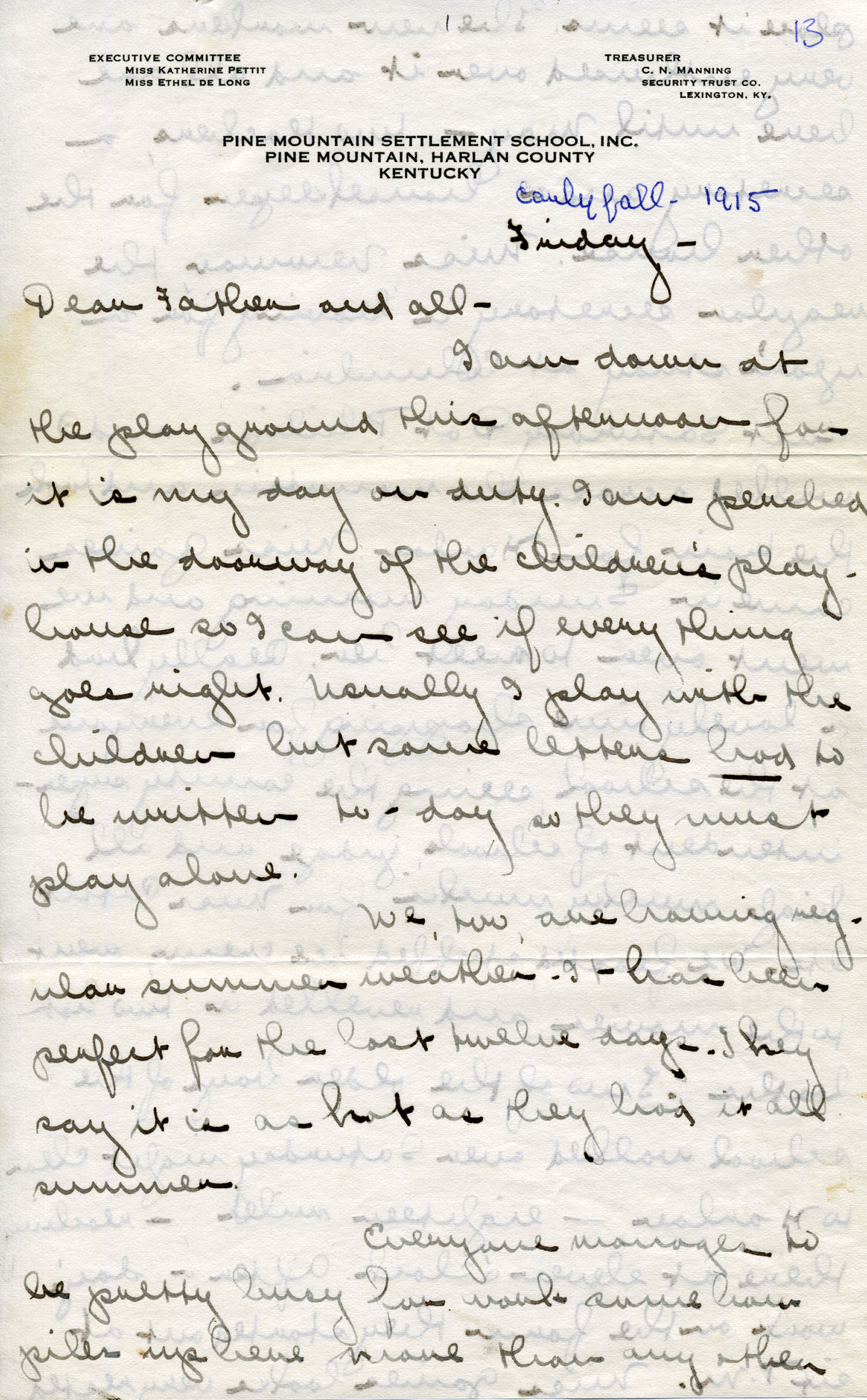 Early Fall, Friday, 1915 – “Dear Father & all — I am down at the playground this afternoon…” [images 053-058]