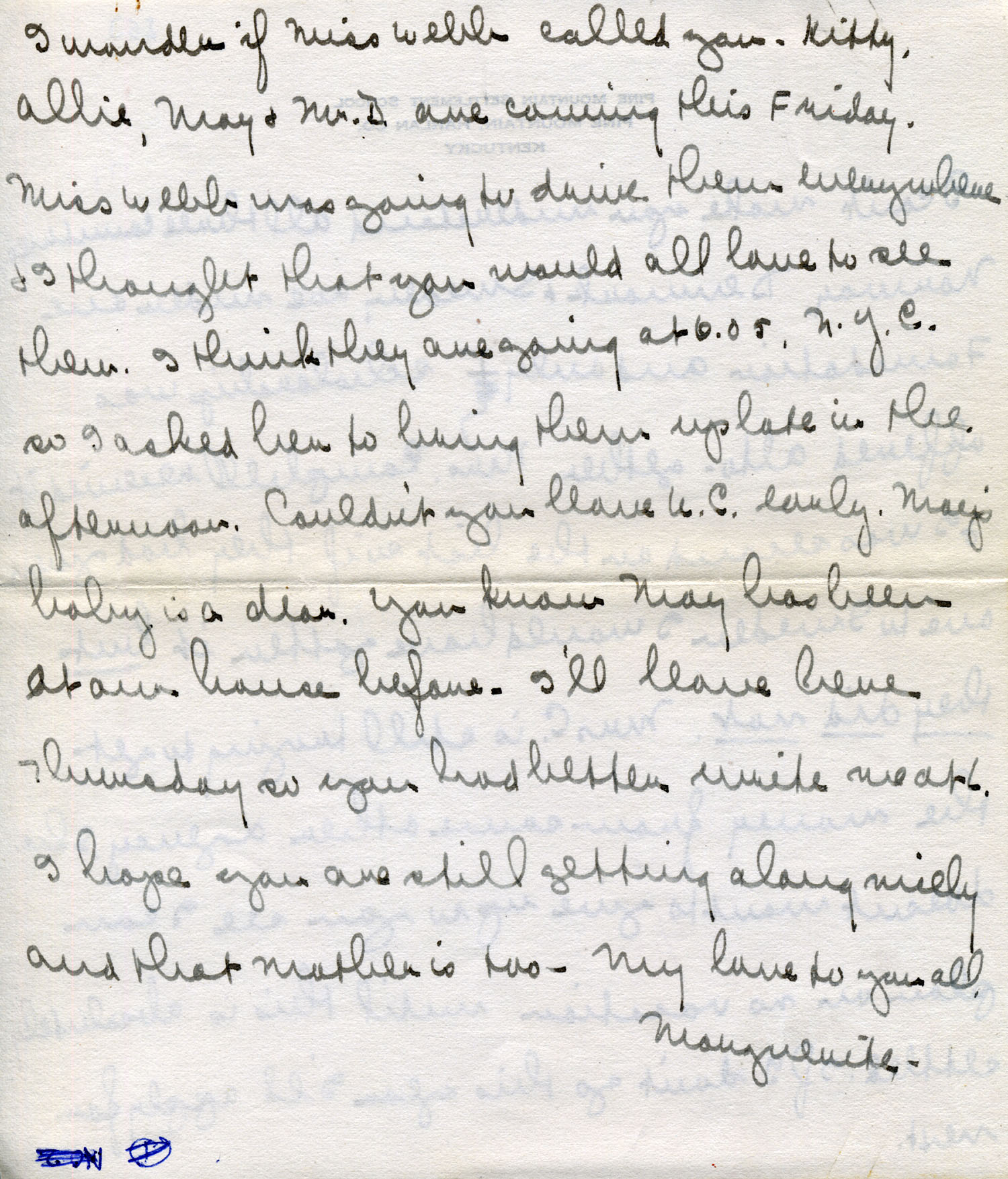Love to everyone. Marguerite