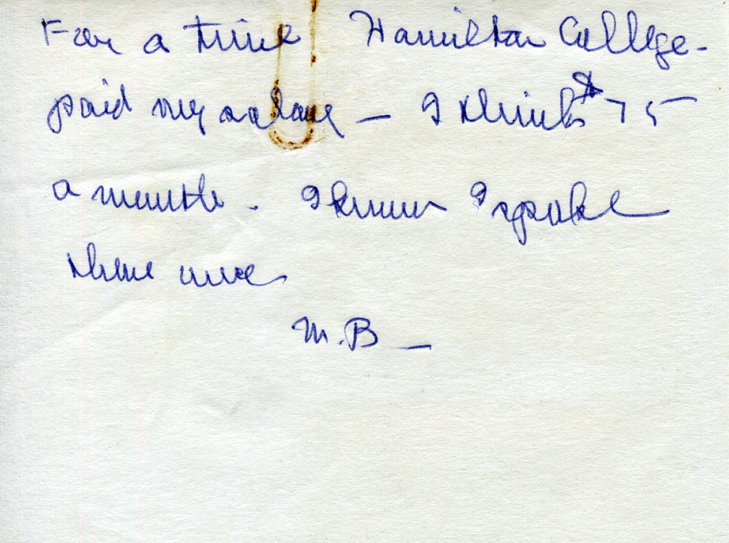 MBB Note — “For a time Hamilton College paid my salary. I think $75 a month. I know I spoke there once. M.B.” [image 029]