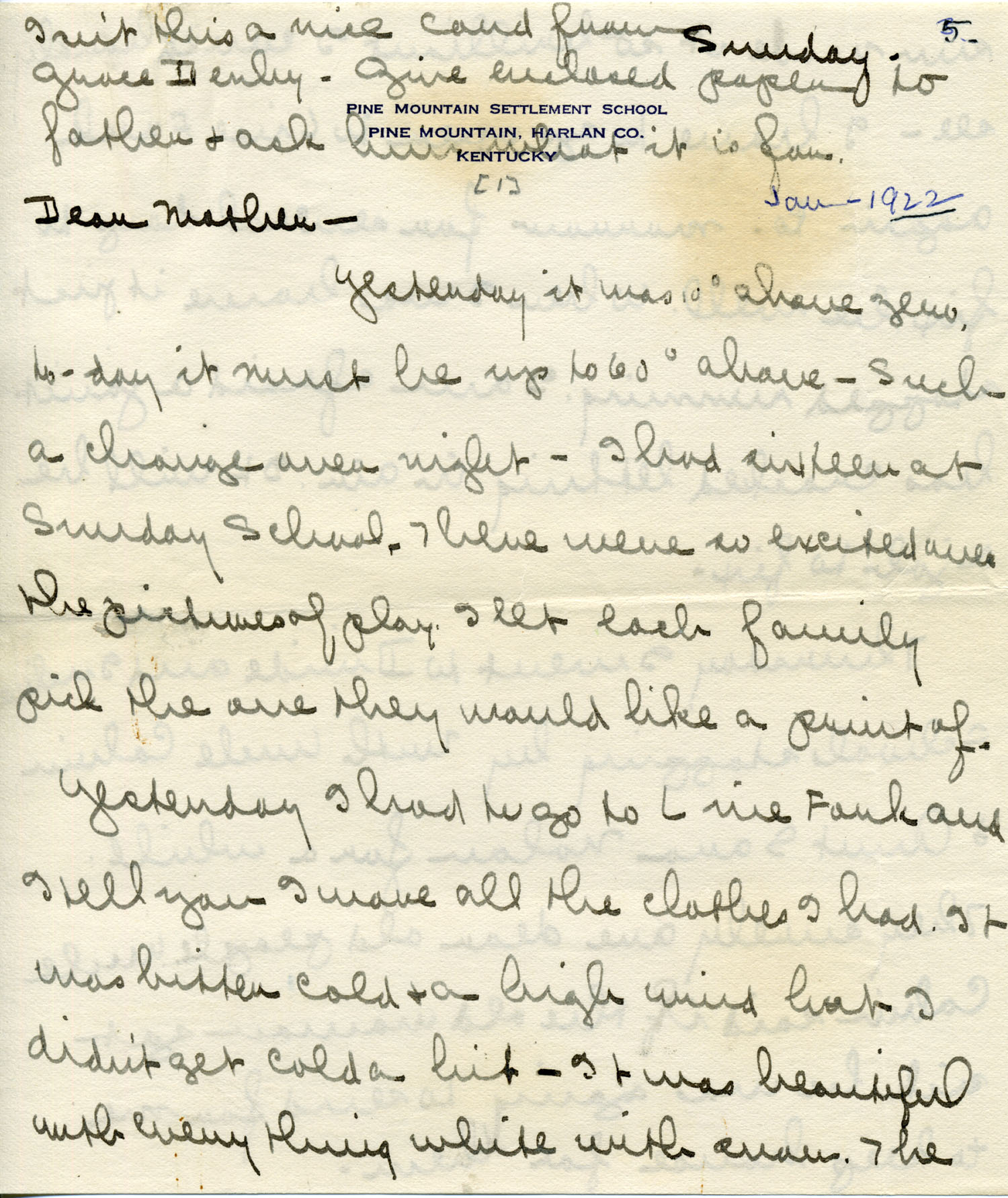 2.    1922 LETTER 2 – Sunday, January 1922 – “Dear Mother — Yesterday it was 10 degrees below zero, today it must be up to 60 degrees above…” [images 007 – 010]