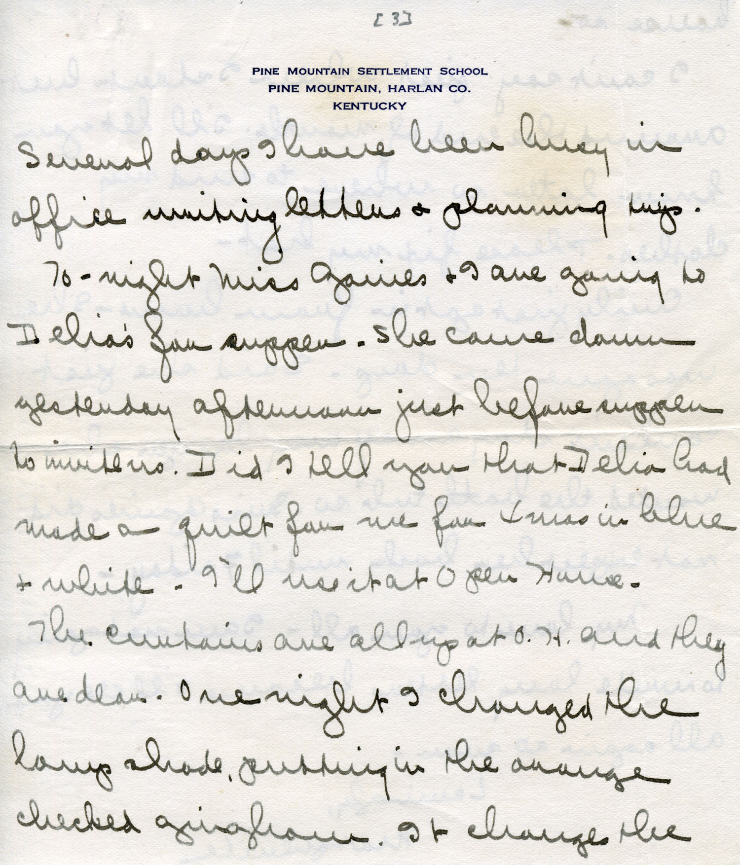 Thursday I rode to the two schools on Abner’s Branch. The rest of the time I’ve been here writing letters, learning to use typewriter, reading up on my talk for conferences, etc.