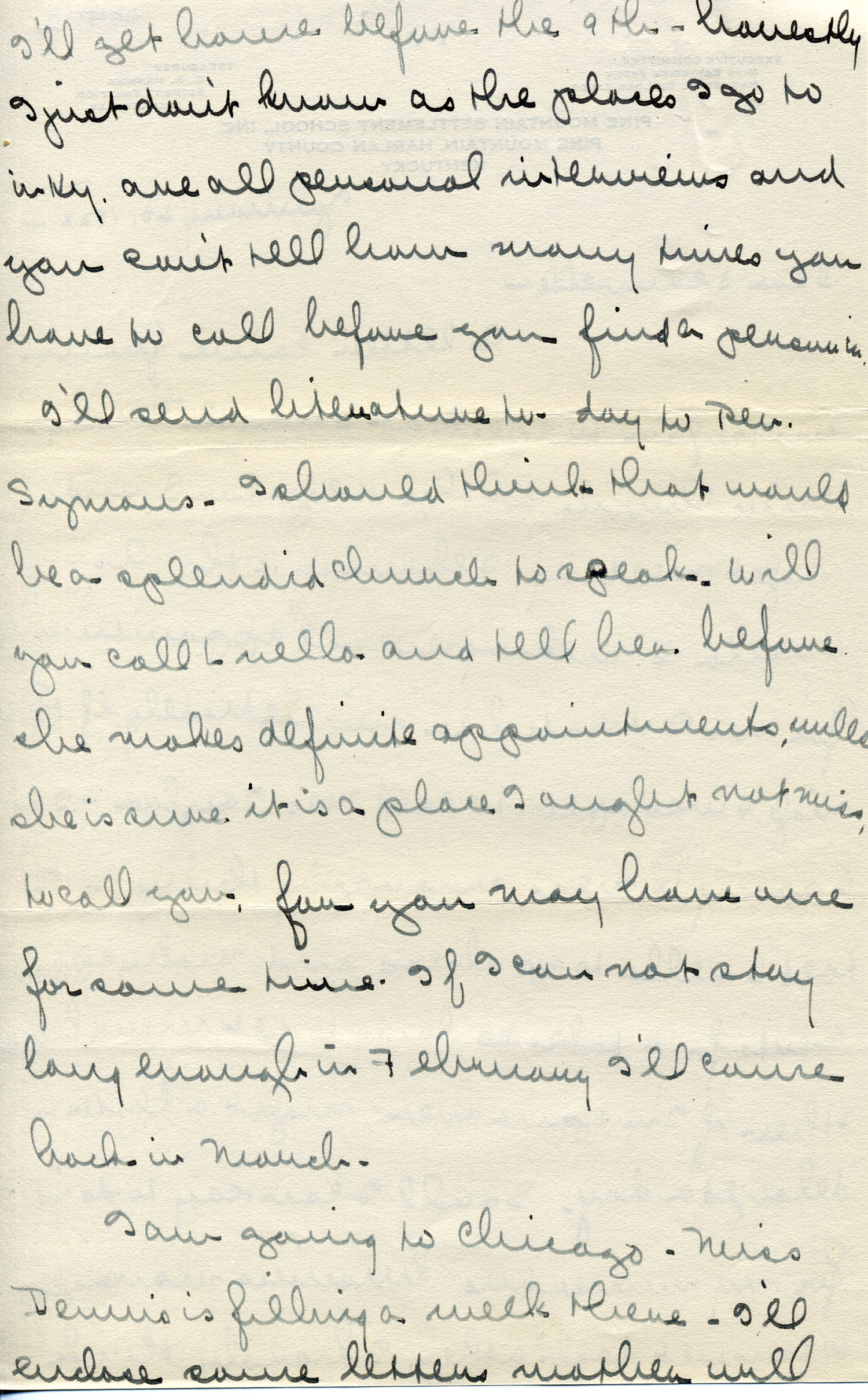 I am going to Chicago. Miss Dennis is filling a week there. I’ll enclose some letters Mother will enjoy reading. Do not return as there is nothing definite in them.