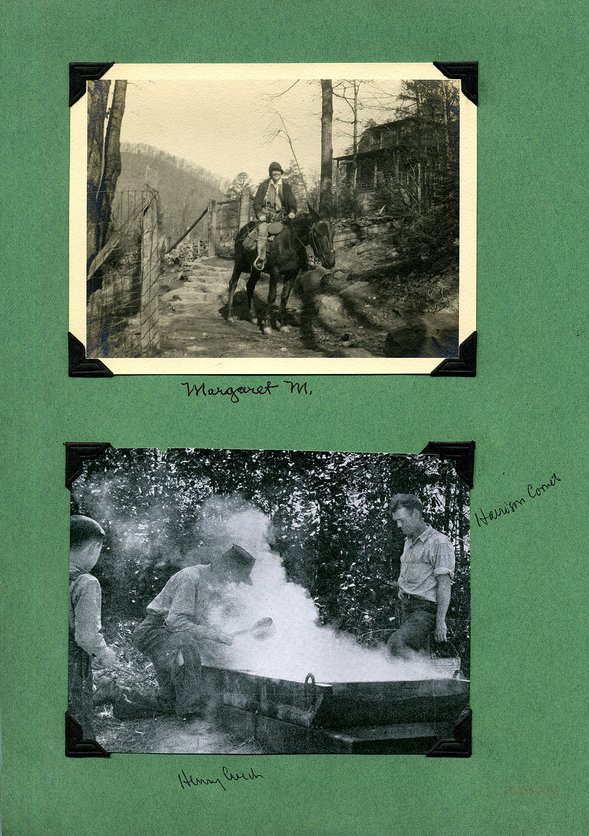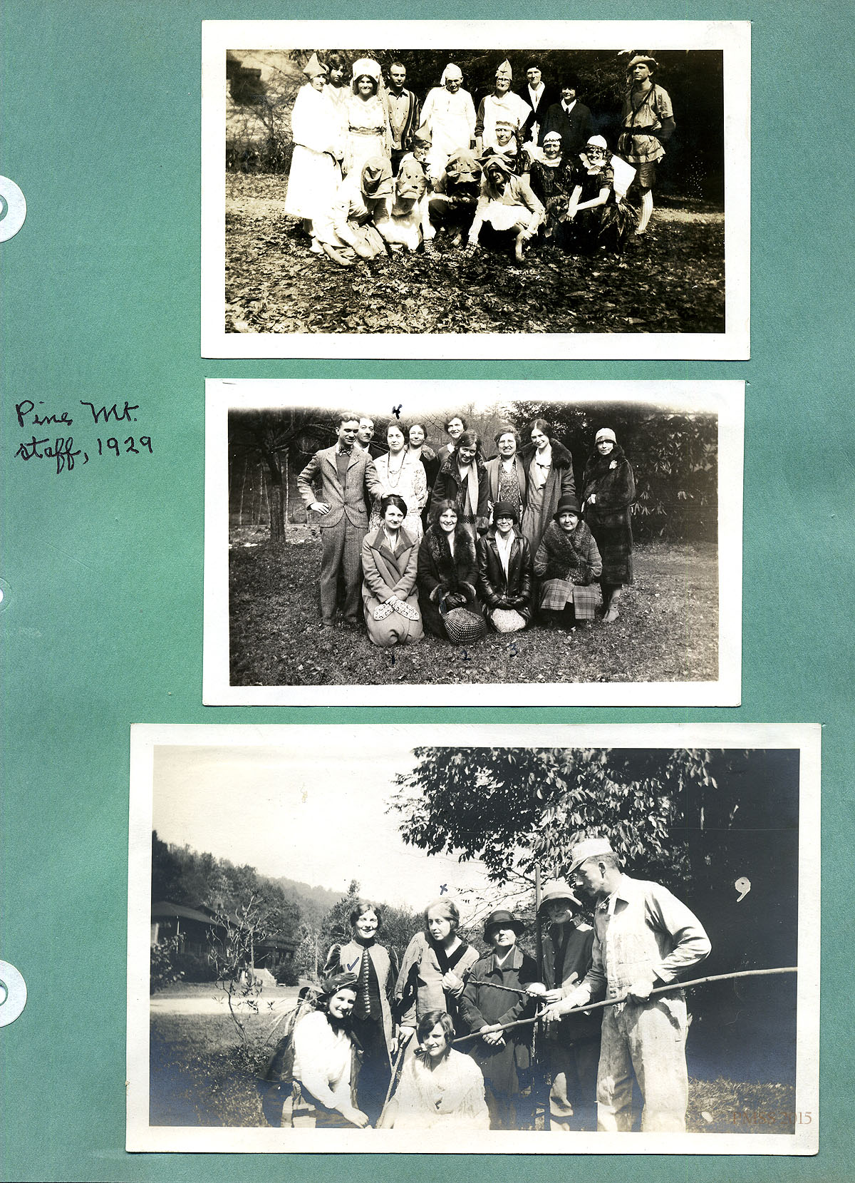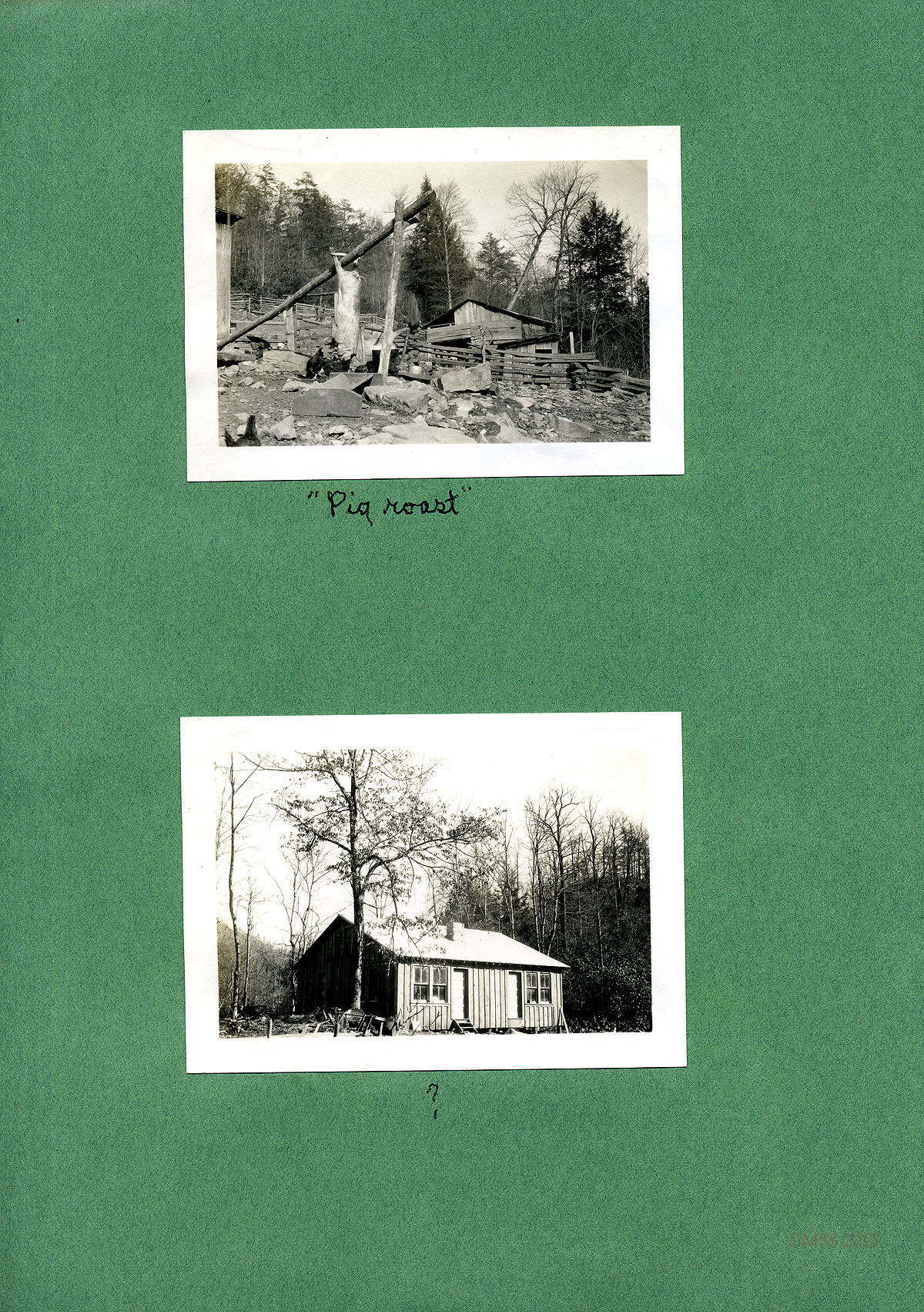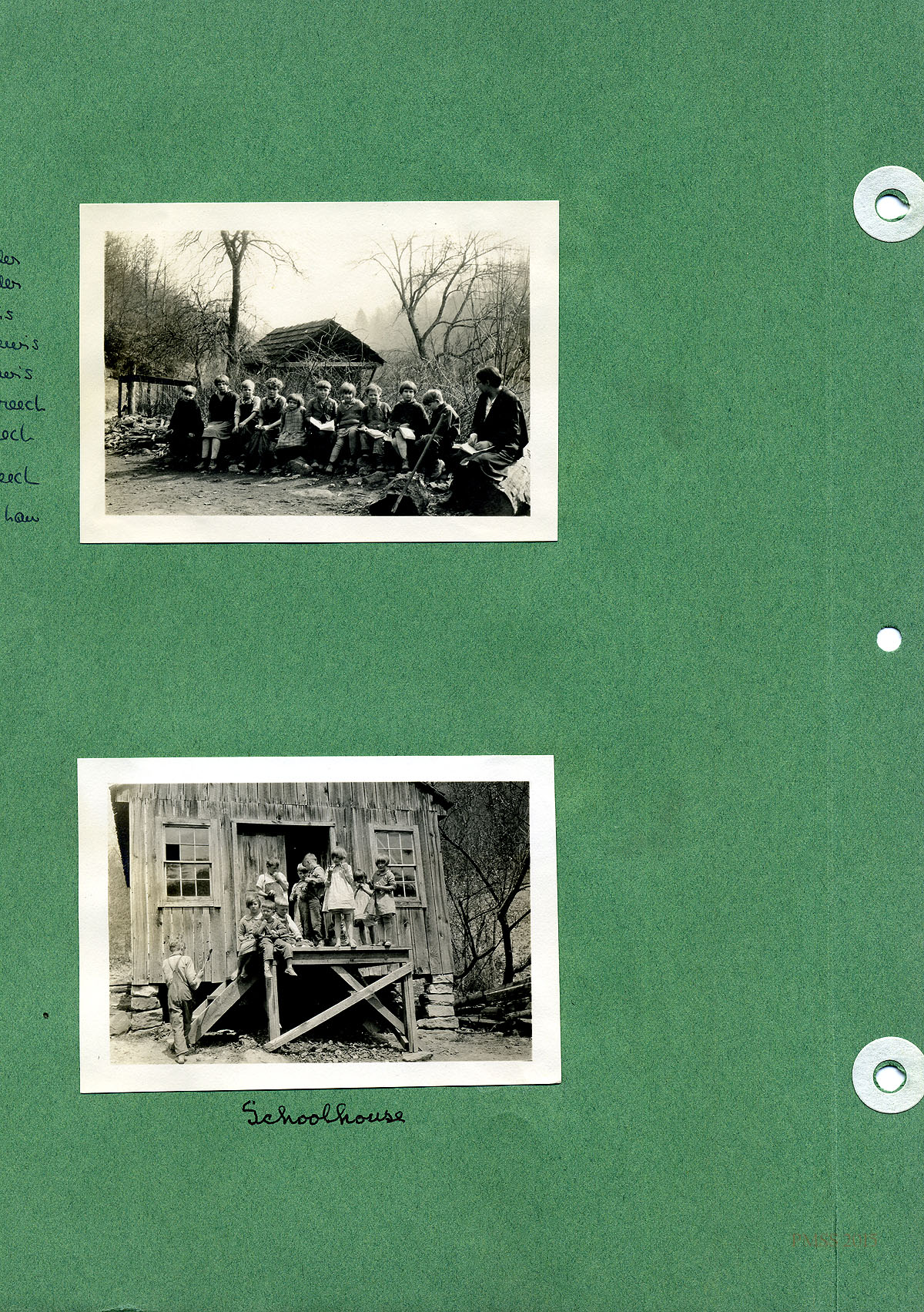 This album is a large collection of photographs in an album of 99 pages.  Gathered from various sources the album represents the years she served on the staff at Pine Mountain Settlement School from 1920 until the mid-1930’s. The album graphically details daily life at the School as well as in the surrounding community. The 99 page album is bound in a loose-leaf fashion with boards covered with mountain homespun woven at the School. The digital album is presented in multiple parts as each page often contains more than two – three photographs, creating large galleries. The two sections on this page contain the whole pages with all photographs. Follow the links to view the individual photographs as separate images IN PARTS I-VI . The images associated with this album have not been modified for emulsion shift or other wear and tear, but are presented as they were scanned.  [Labeling of items is in process]