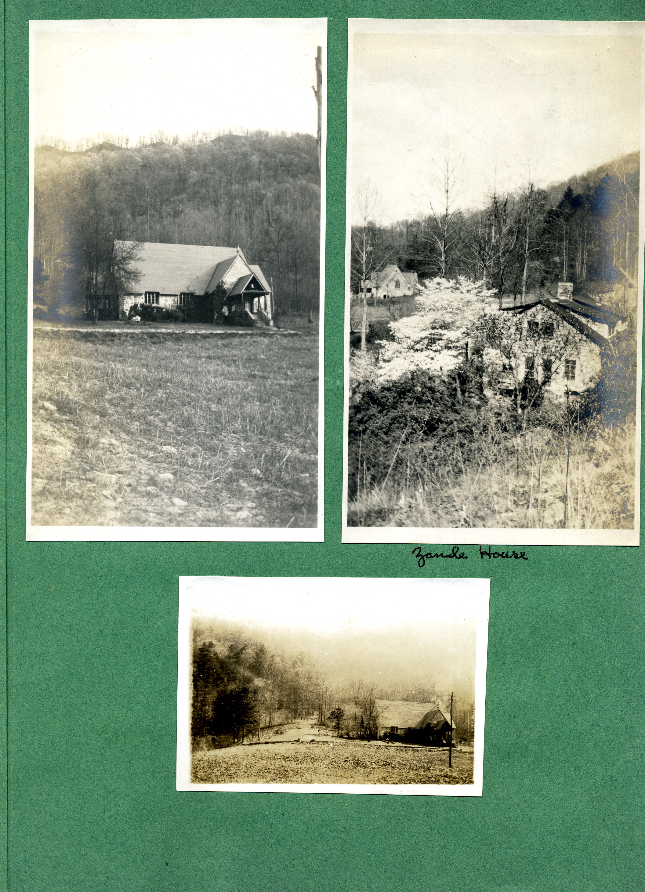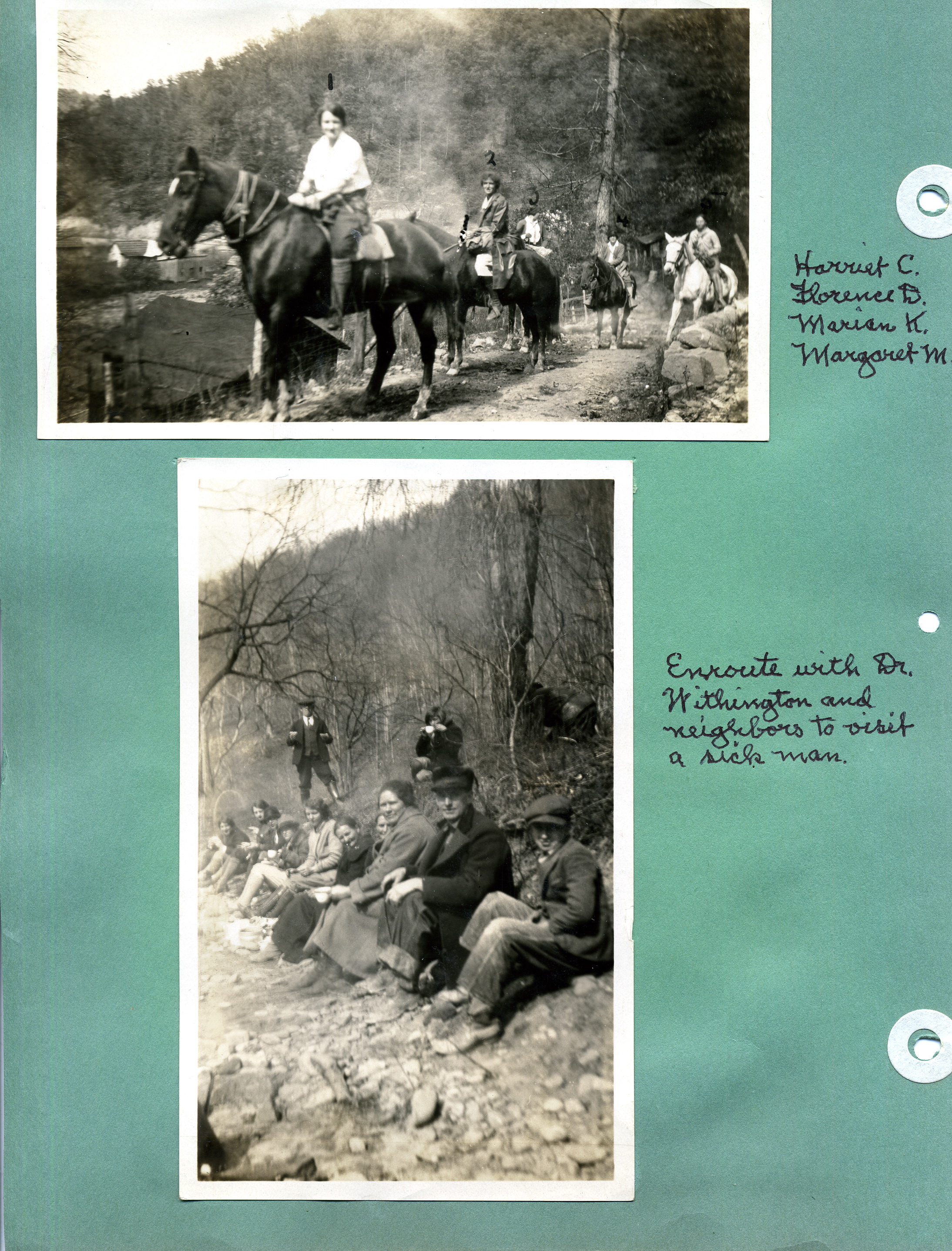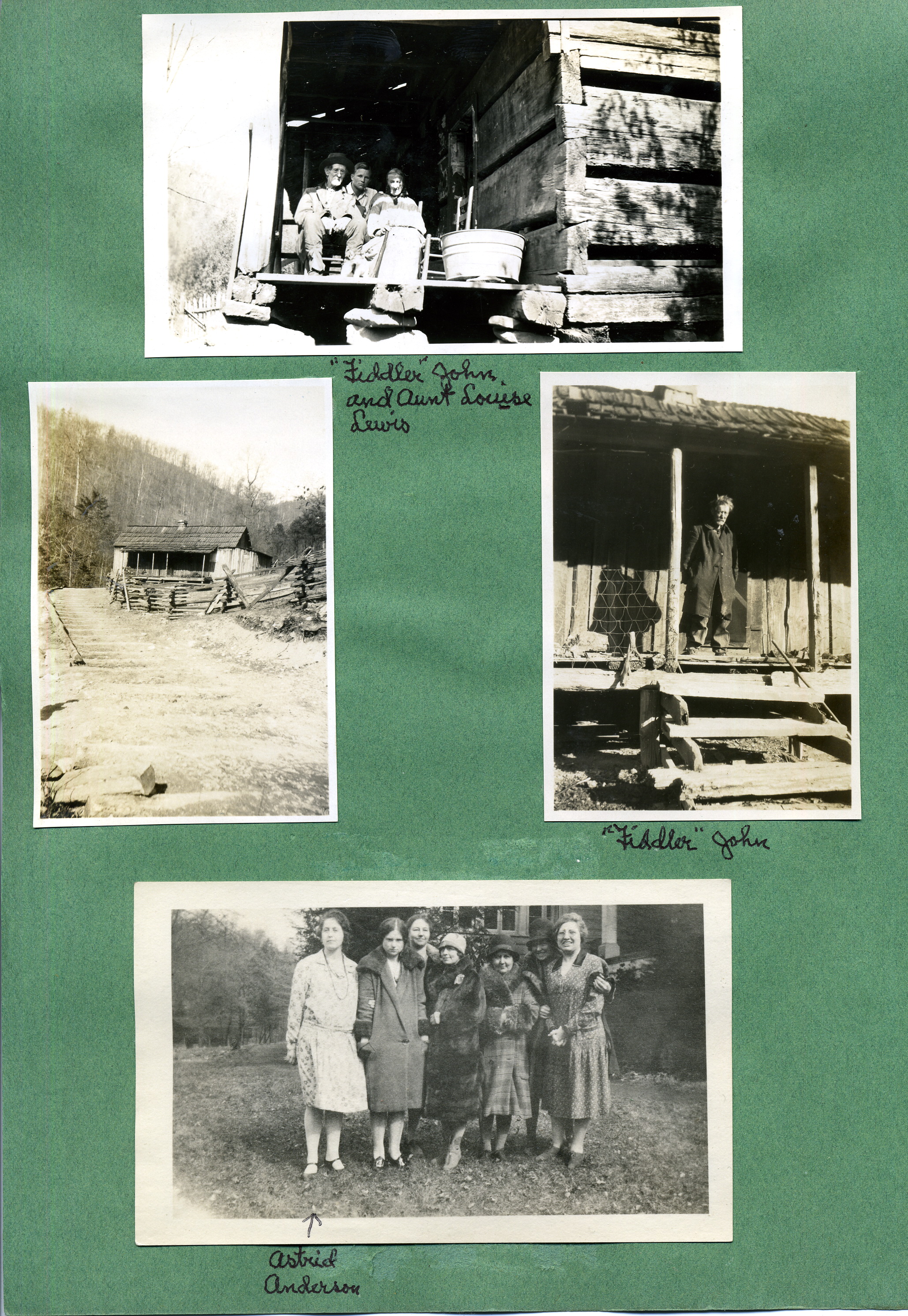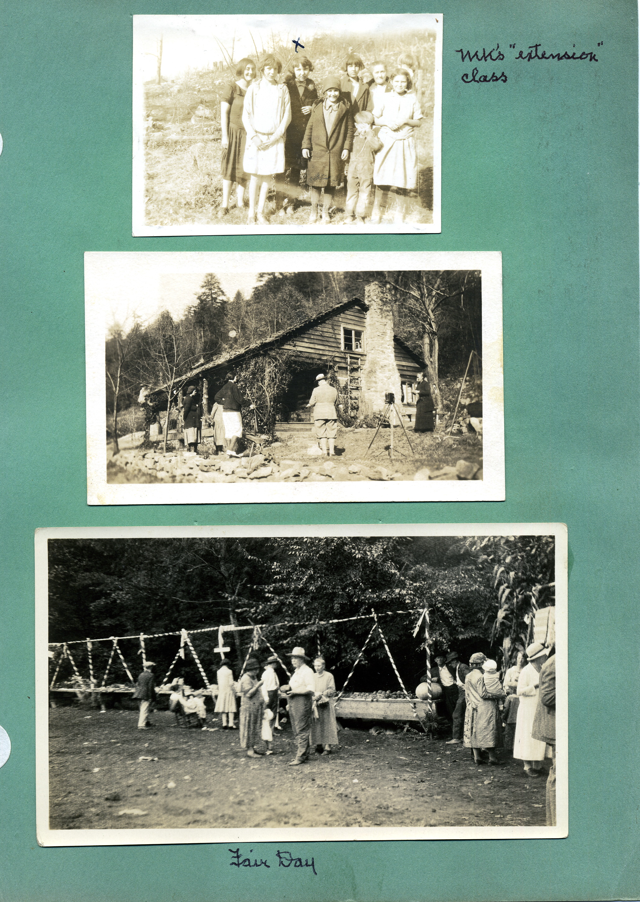 This album is a large collection of photographs in an album of 99 pages.  Gathered from various sources the album represents the years she served on the staff at Pine Mountain Settlement School from 1920 until the mid-1930’s. The album graphically details daily life at the School as well as in the surrounding community. The 99 page album is bound in a loose-leaf fashion with boards covered with mountain homespun woven at the School. The digital album is presented in multiple parts as each page often contains more than two – three photographs, creating large galleries. The two sections on this page contain the whole pages with all photographs. Follow the links to view the individual photographs as separate images IN PARTS I-VI . The images associated with this album have not been modified for emulsion shift or other wear and tear, but are presented as they were scanned.  [Labeling of items is in process]