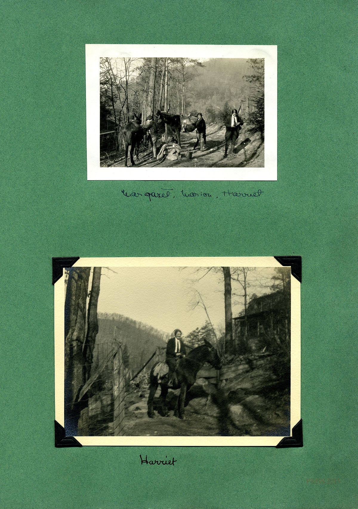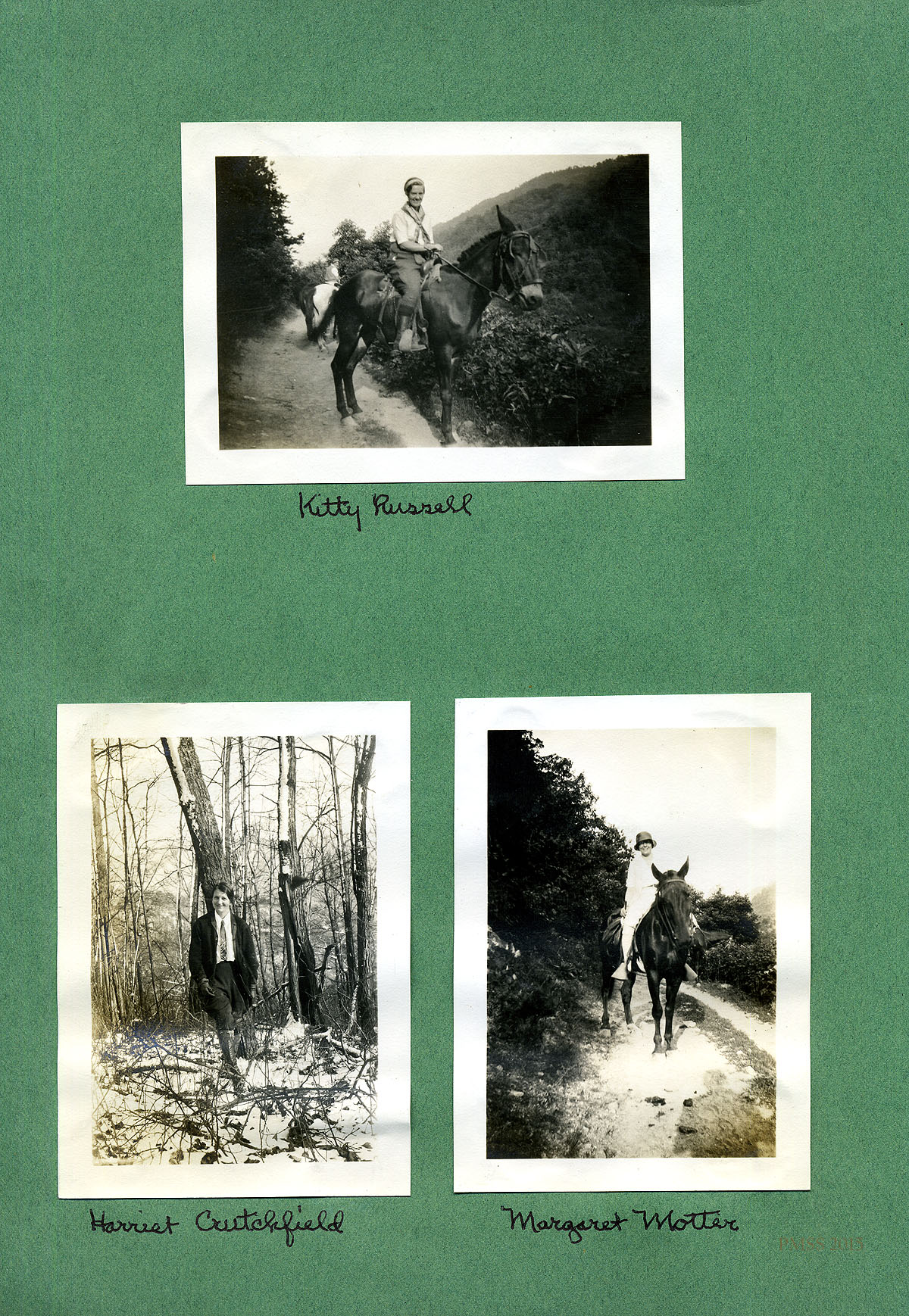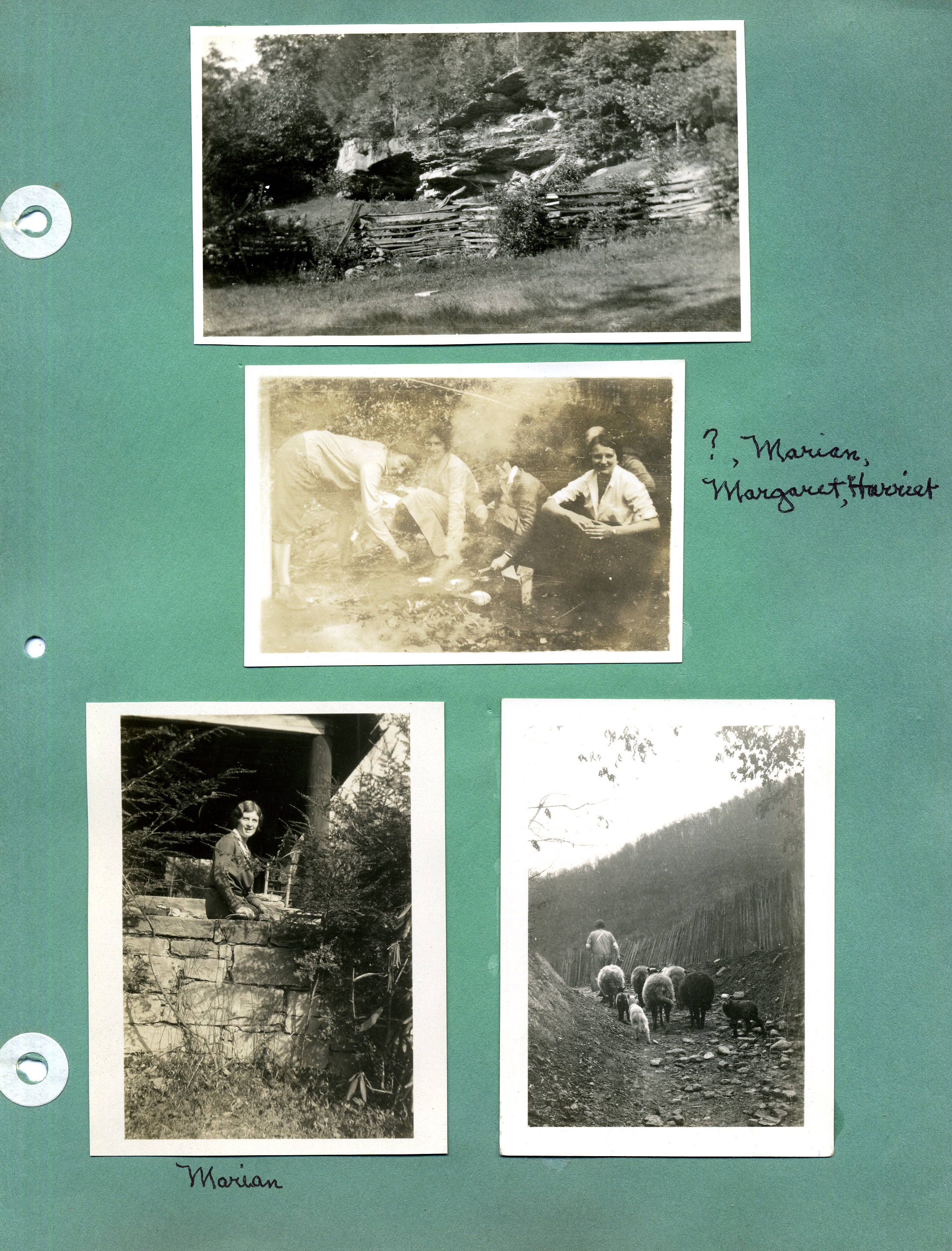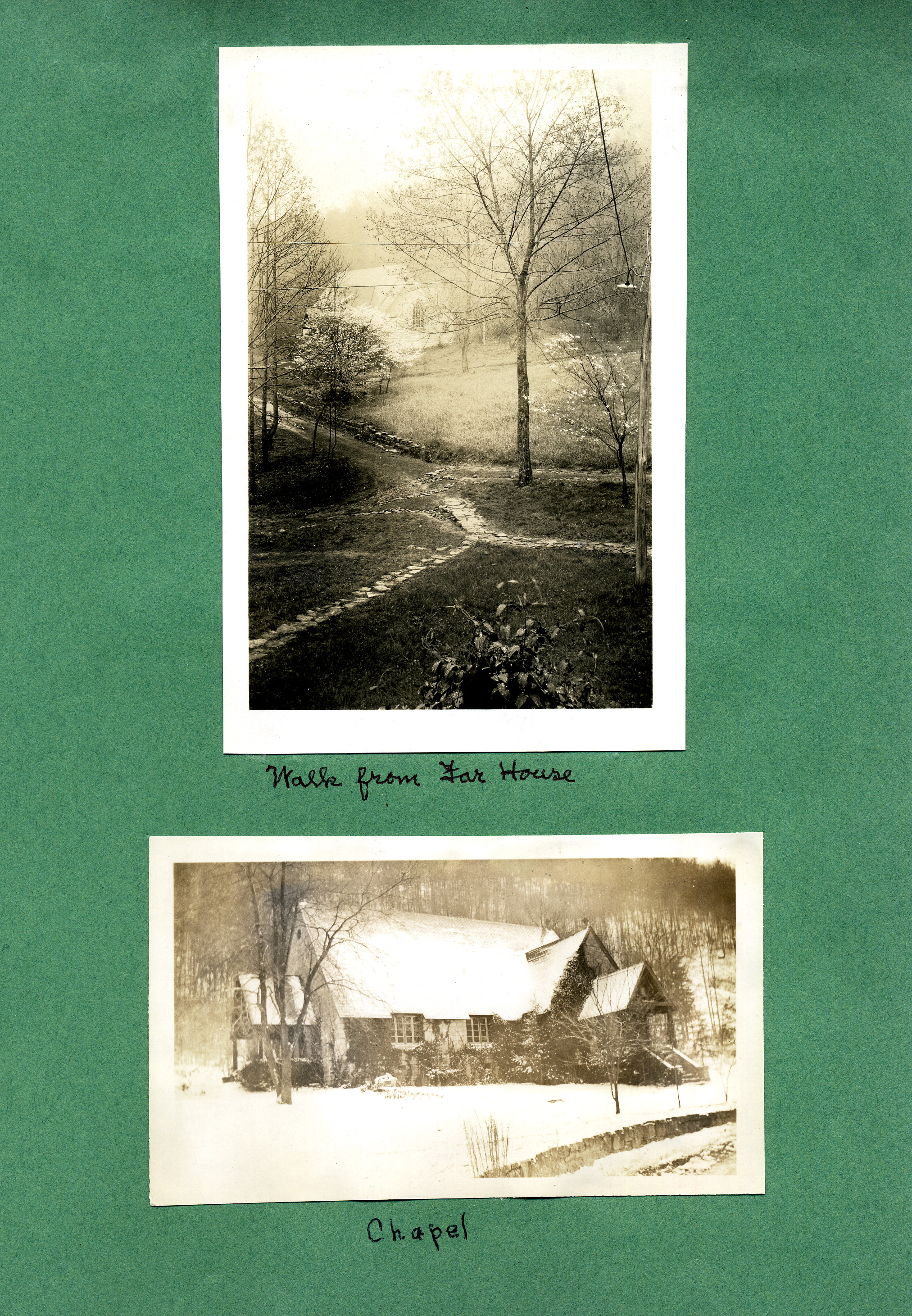 This album is a large collection of photographs in an album of 99 pages.  Gathered from various sources the album represents the years she served on the staff at Pine Mountain Settlement School from 1920 until the mid-1930’s. The album graphically details daily life at the School as well as in the surrounding community. The 99 page album is bound in a loose-leaf fashion with boards covered with mountain homespun woven at the School. The digital album is presented in multiple parts as each page often contains more than two – three photographs, creating large galleries. The two sections on this page contain the whole pages with all photographs. Follow the links to view the individual photographs as separate images IN PARTS I-VI . The images associated with this album have not been modified for emulsion shift or other wear and tear, but are presented as they were scanned.  [Labeling of items is in process]