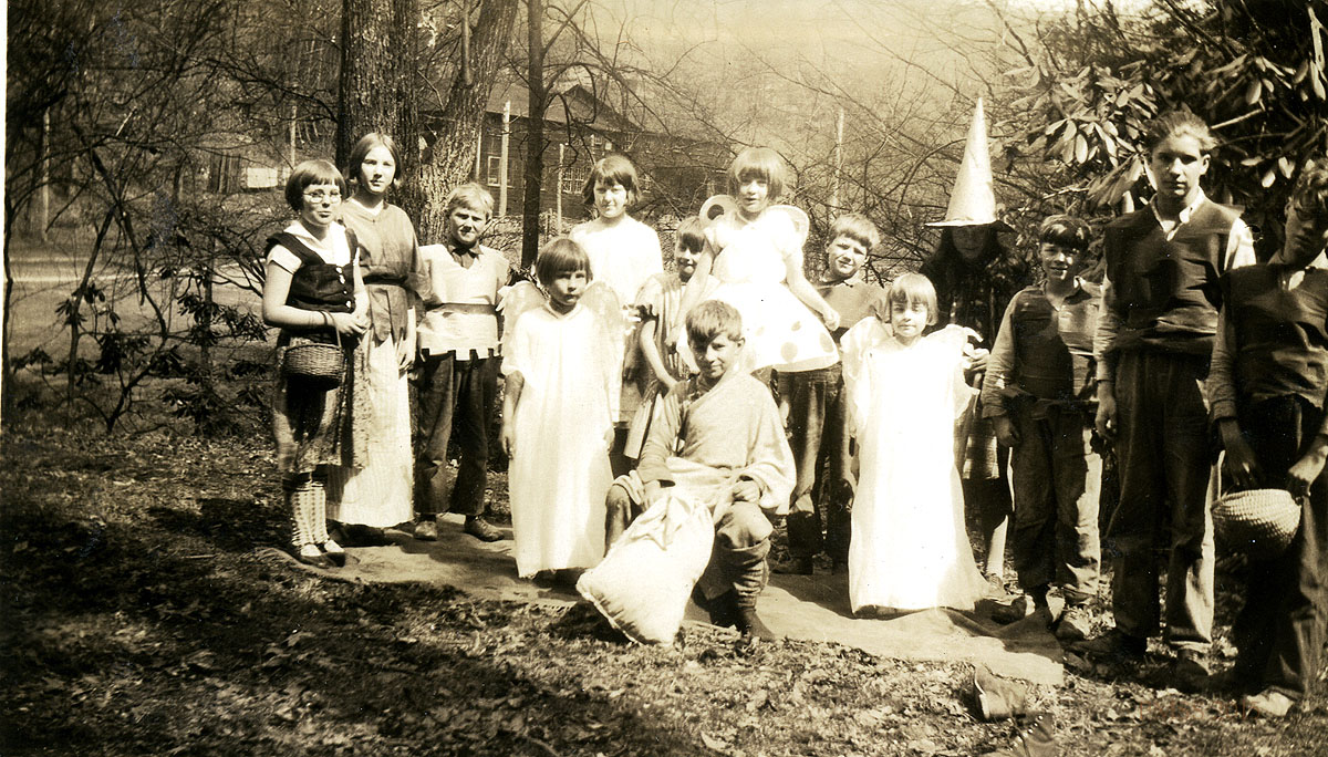 Tags: pageants ; plays ; Robin Hood ; Midsummer Night’s Dream ; Brit Wilder ; Wilie Lewis ; Sylvan [Silven] Hayes ; Addie Cornet ; Bennie Turner ; Edward Adams ; Dillard Couch ; Eva Lewis; Chapel ; floods ; Big Laurel Medical Settlement ; Line Fork Settlement ; Little Women ; Eunice Cornett ; Norma Lewis ; Nativity Play ; Dr. Ida Stapleton ; Rev. Robert Stapleton ;  Farm House ; Farm House ; Jack’s Gap ; Laurel House ; Zande House ; split rail fences ; fire tower ; Infirmary ; Katherine Pettit ; Pine Mountain Post Office ;  Indian Cliff ; Conjunction ; railroads ; railroad tracks ; Dingy railroad ; logging ; Big Black Mountain ;