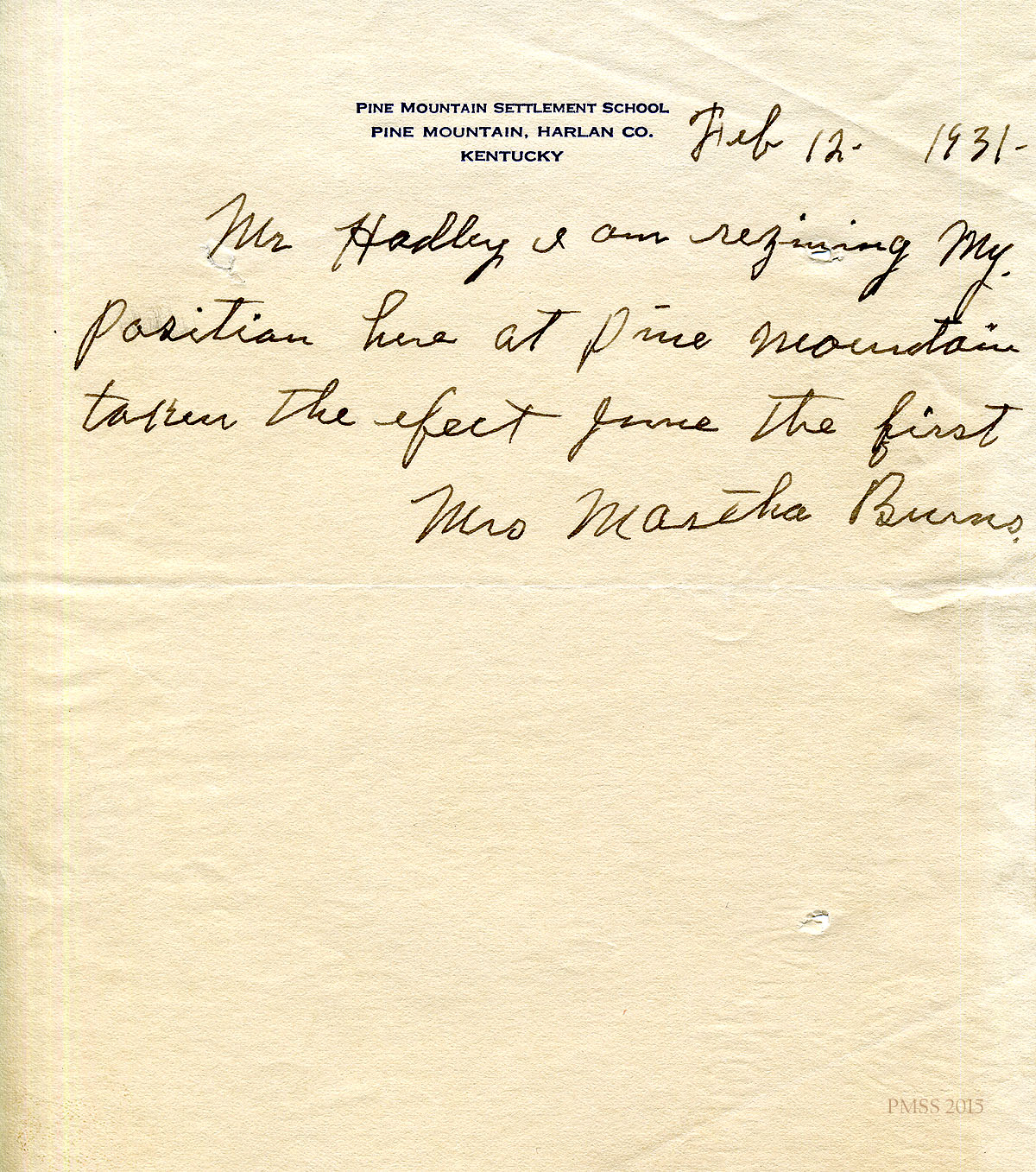 Mrs. Burns leaves us with the goodwill of the entire staff of workers, and their admiration of her uprightness and their belief in her deep interest in the welfare of the young people of the Kentucky Mountains.
