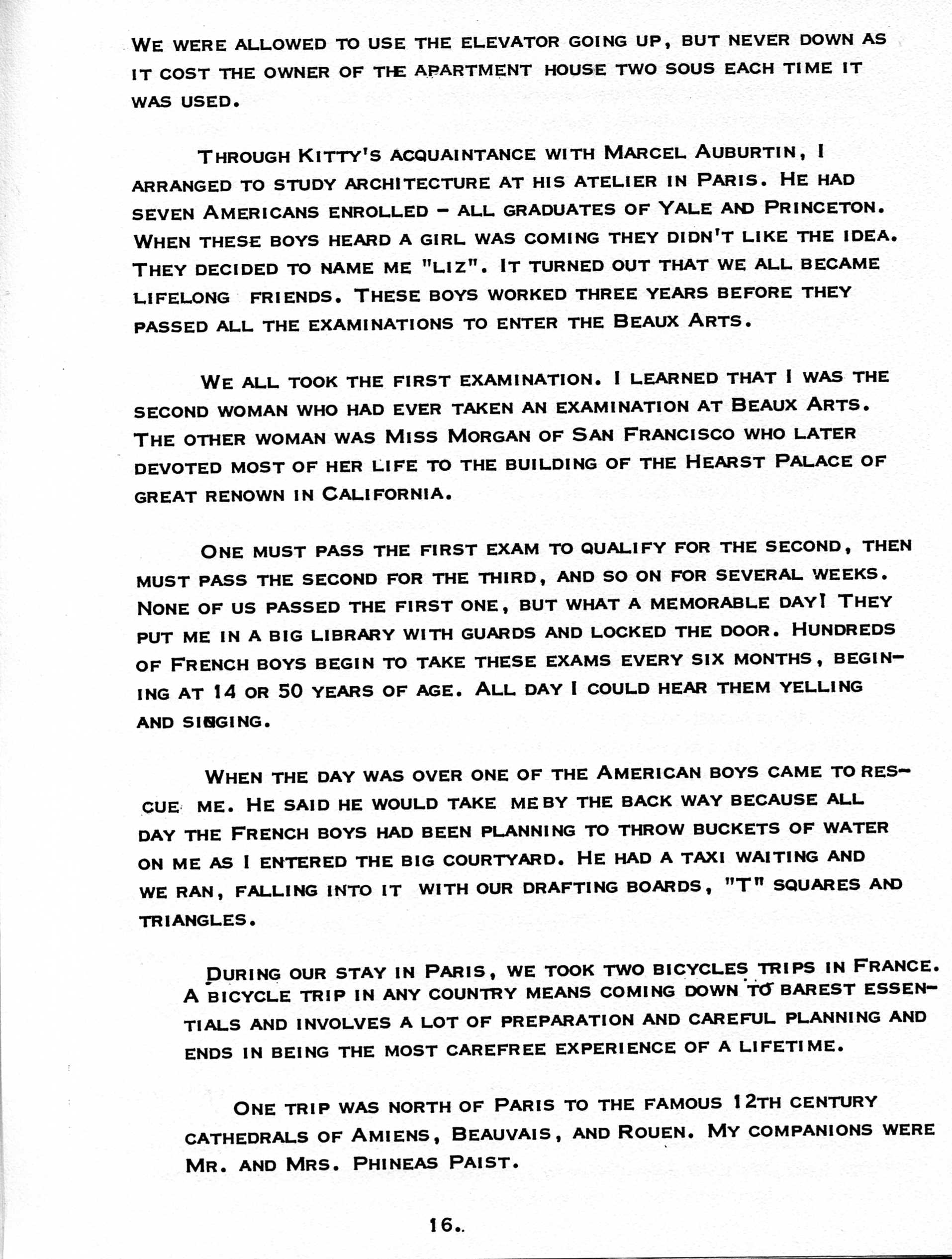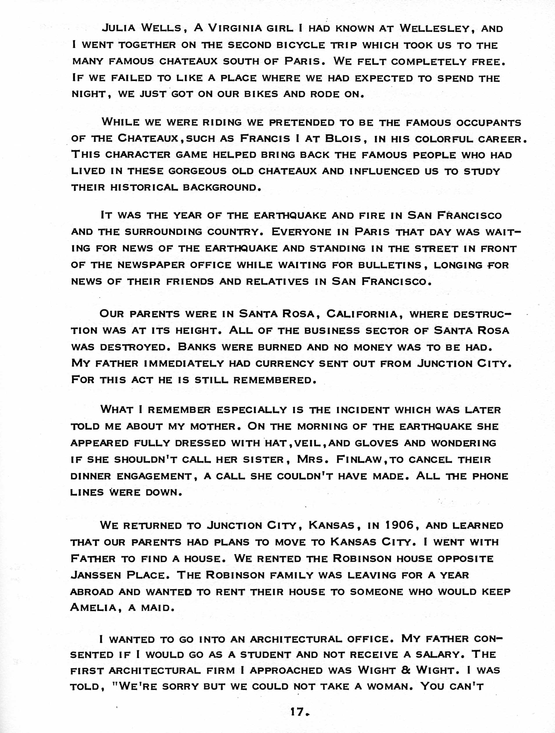 TAGS: Mary Rockwell Hook, autobiography, Wellesley College, Ecole des Beaux-Arts, Jean-Marcel Arbutin, Art Institute of Chicago, women architects, Katherine Pettit, Ethel de Long Zande, Marguerite Butler Bidstrup, Angela Melville, Luigi Zande, gender bias, American Institute of Architects, Kansas City, MO, Howe, Holt and Cutler, Old Log, Big Log, Laurel House I, Laurel House II, PMSS Board of Trustees, Inghram D. Hook, National Register of Historic Places, Kansas City Landmarks Commission, Leon Deschamps, Hook and Remington, Eric Douglas MacWilliam Remington, ‘Mac’ Remington, International Archive of Women in Architecture, Susan Huntington, Ann Huntington, Burton Rogers, Glyn Morris, Gladys Morris,