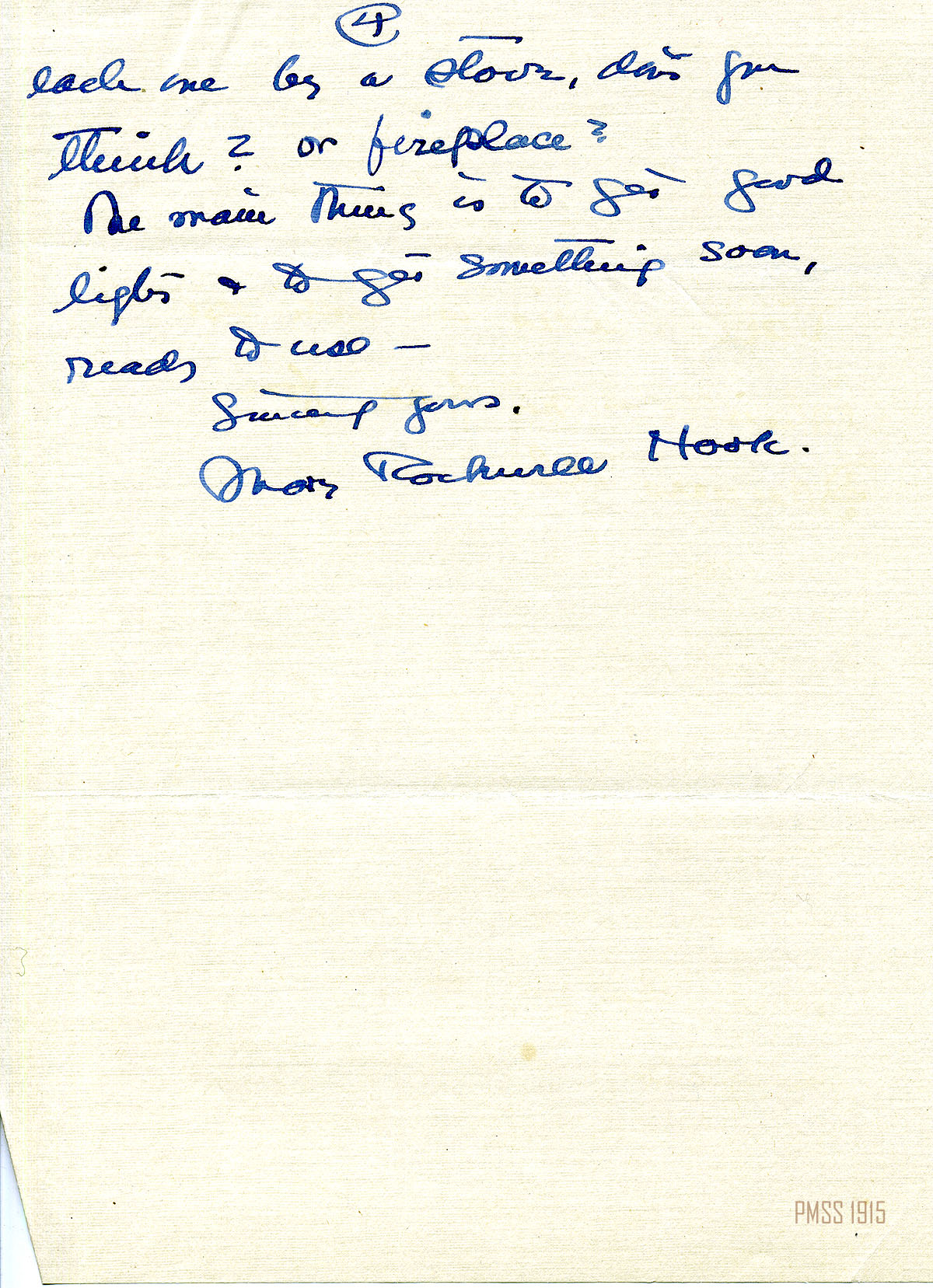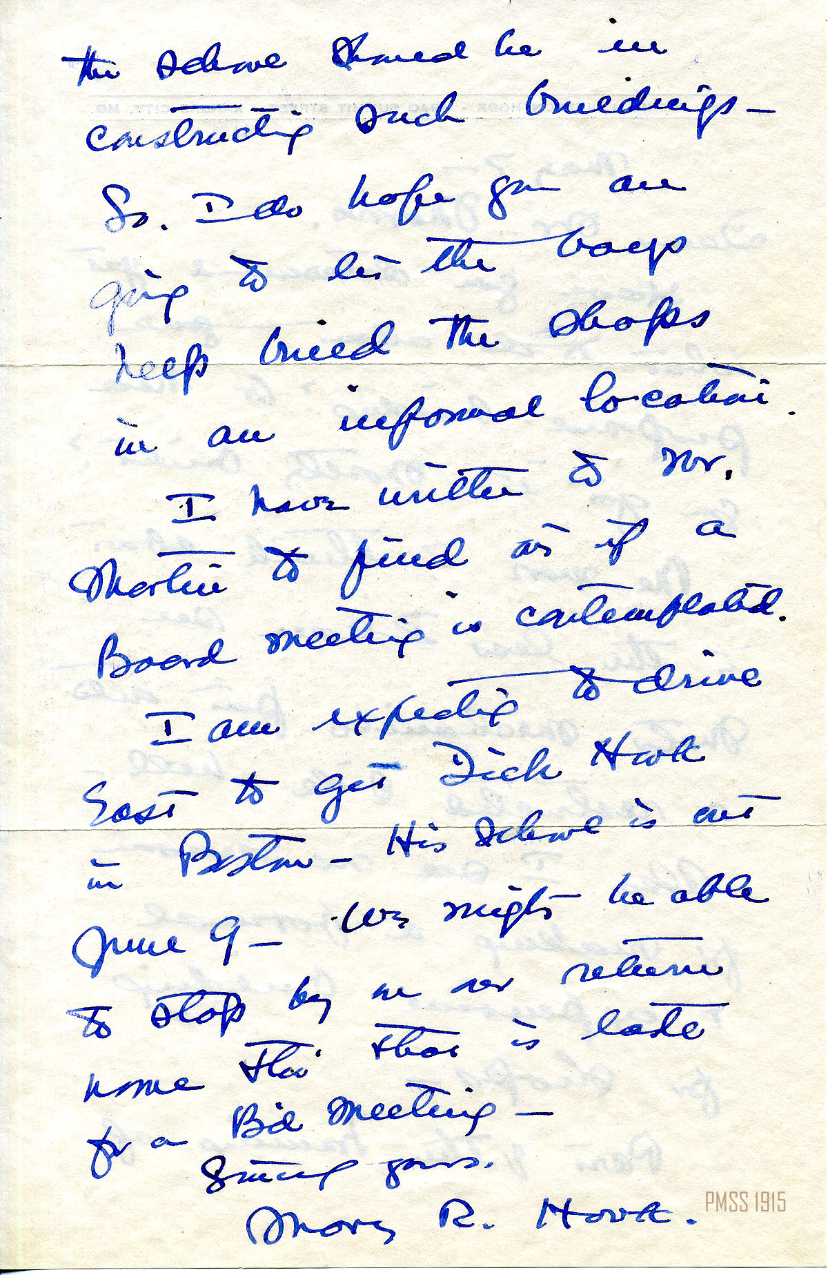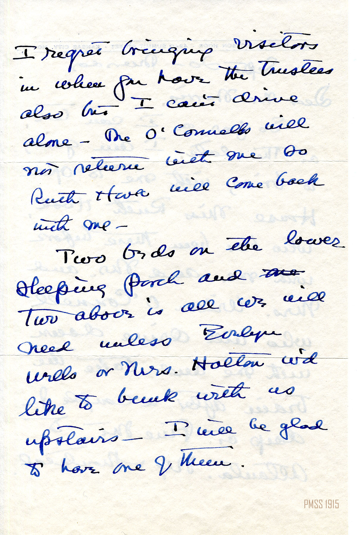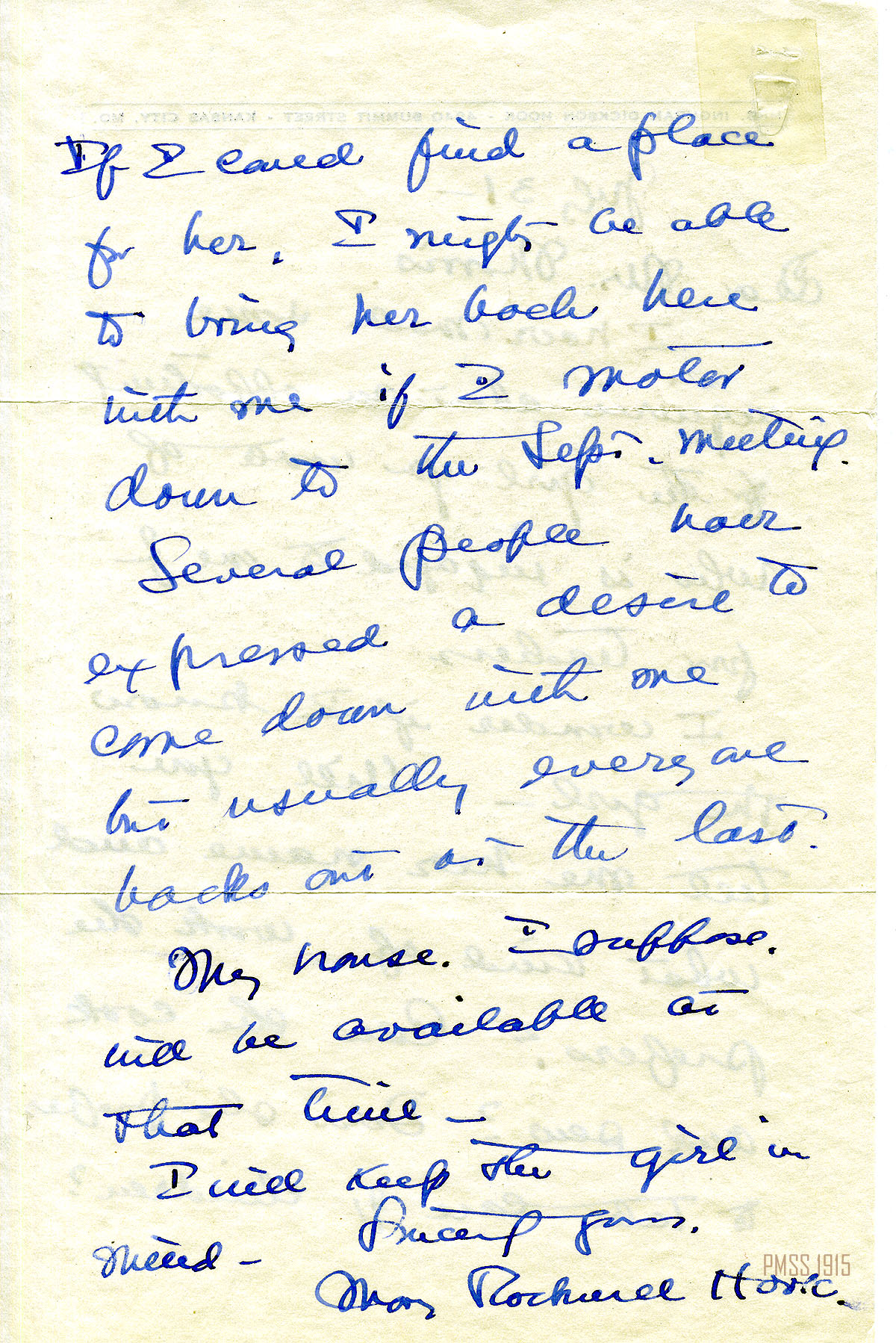 [Note: Letters from PMSS staff in the PMSS Collections are carbon copies, typewritten, unsigned, and meant for the Office files. The original signed copies were sent to the correspondents. Mary Rockwell Hook‘s letters are handwritten and original. The following list of contents is in chronological order and not necessarily in the order of the image numbers.]