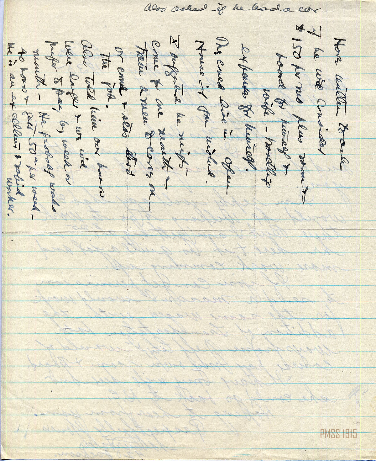 008b N.D. (Reverse side of 008a in Hook’s handwriting.) A note concerning her agreement with the worker concerning terms and wage at $150 a month plus room and board for himself and his wife. She suggests where he may stay (Open House) and how long.