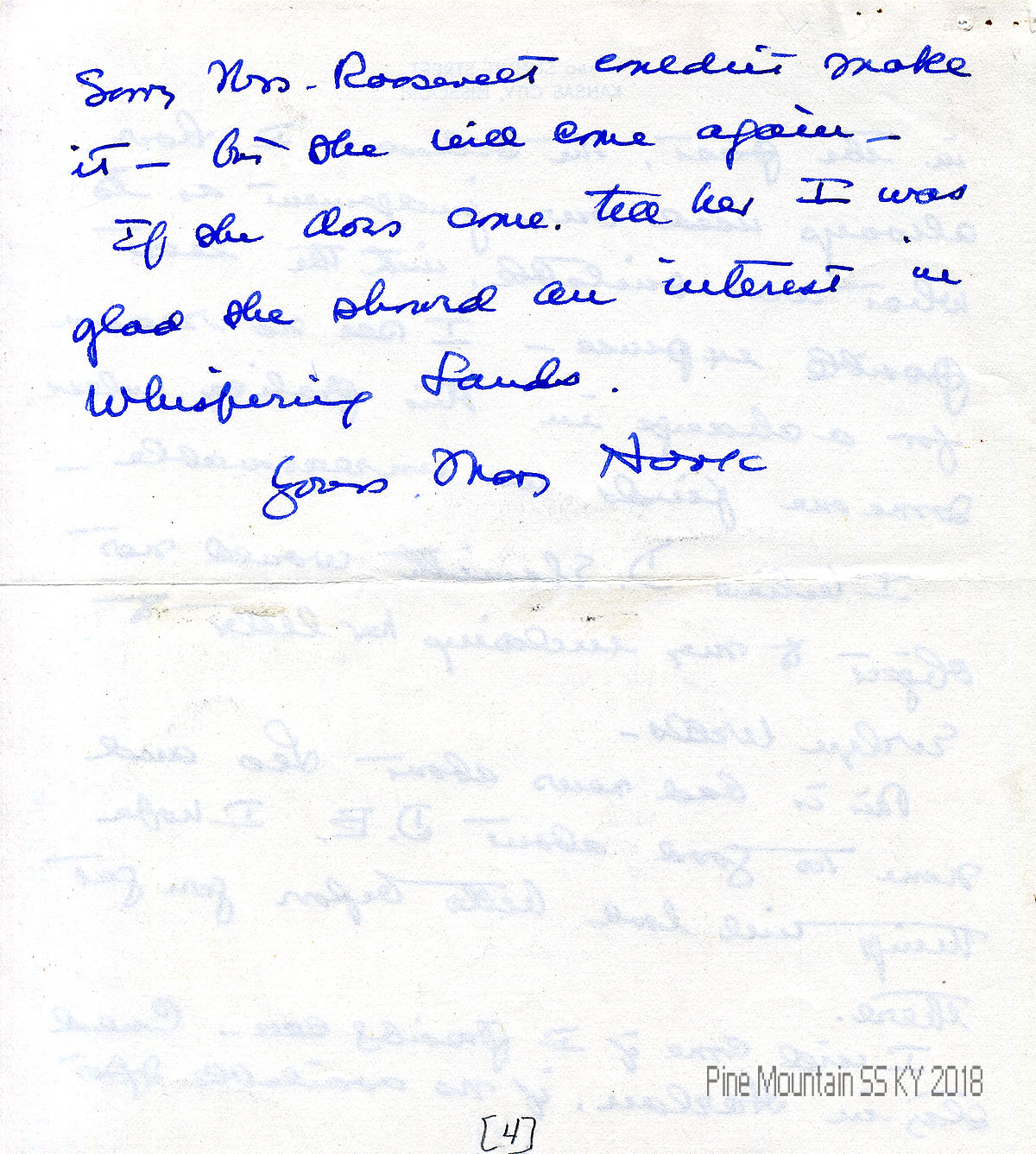 017-017c May 26, (No year – later notation: “1941”). Four-page letter to Morris from Hook, who will come to PMSS if she can get a new cook; hopes to check with Gladys (Morris) on furnishings and hangings. “Sorry Mrs. Roosevelt couldn’t make it – but she will come again. …”