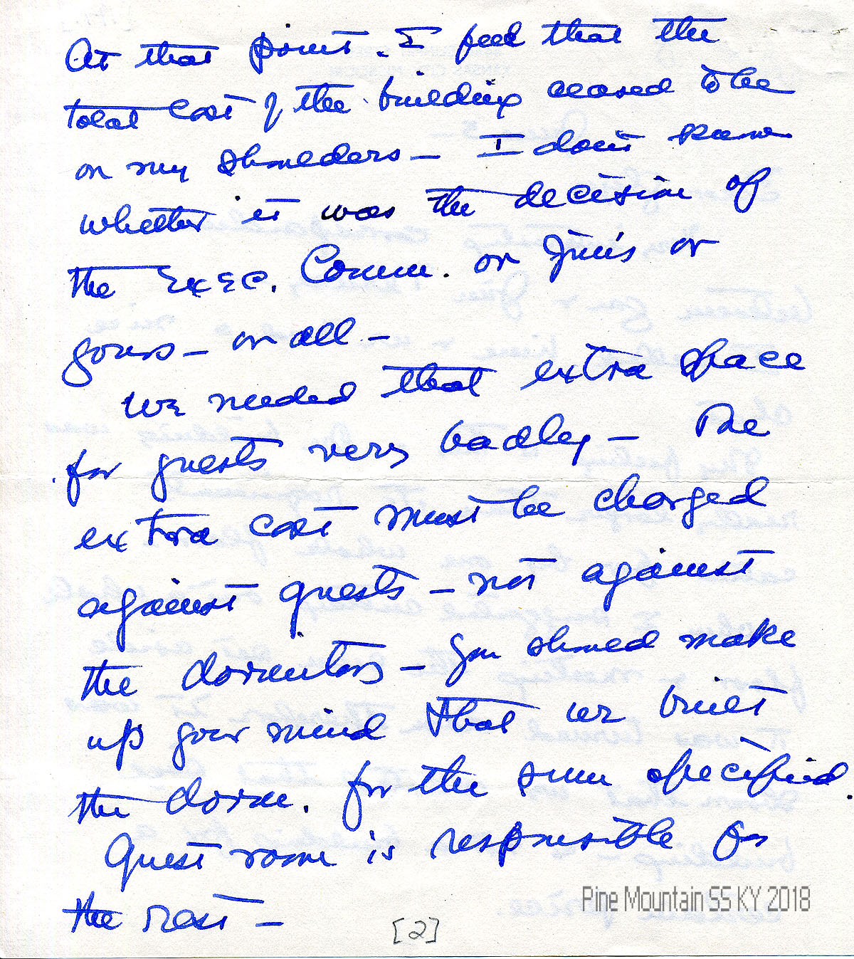019 -019c June 3, (No year. Later notation: “1941”) Four-page letter to Morris from Hook. She expresses her opinions about Jim Terney’s and Morris’s letters concerning adding extra space in the dormitory for guests and the subsequent extra cost. Asks Gladys (Morris) to write about what she has purchased for living rooms in West Wind and Laurel House. Regrets missing the Institute meeting.