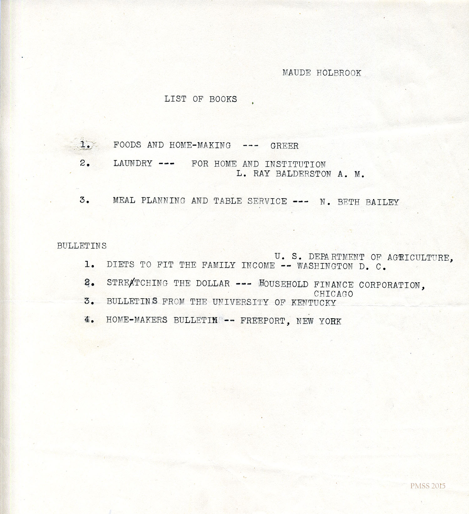 TAGS: Maude Holbrook, correspondence, homemaking books, Glyn Morris, Gilley KY, National Society Daughters of the American Revolution, DAR Citizenship Medal, Harlan KY, Arthur Dodd, Practice House, teachers, students, student applications, school records