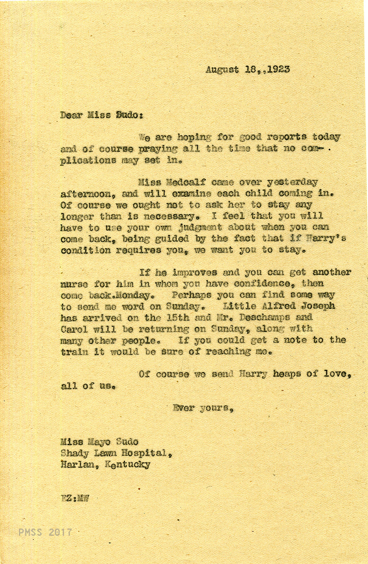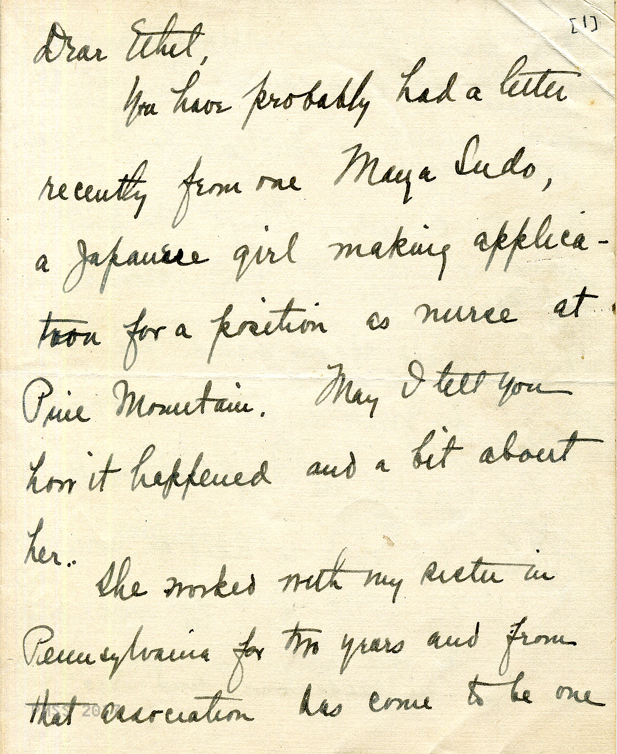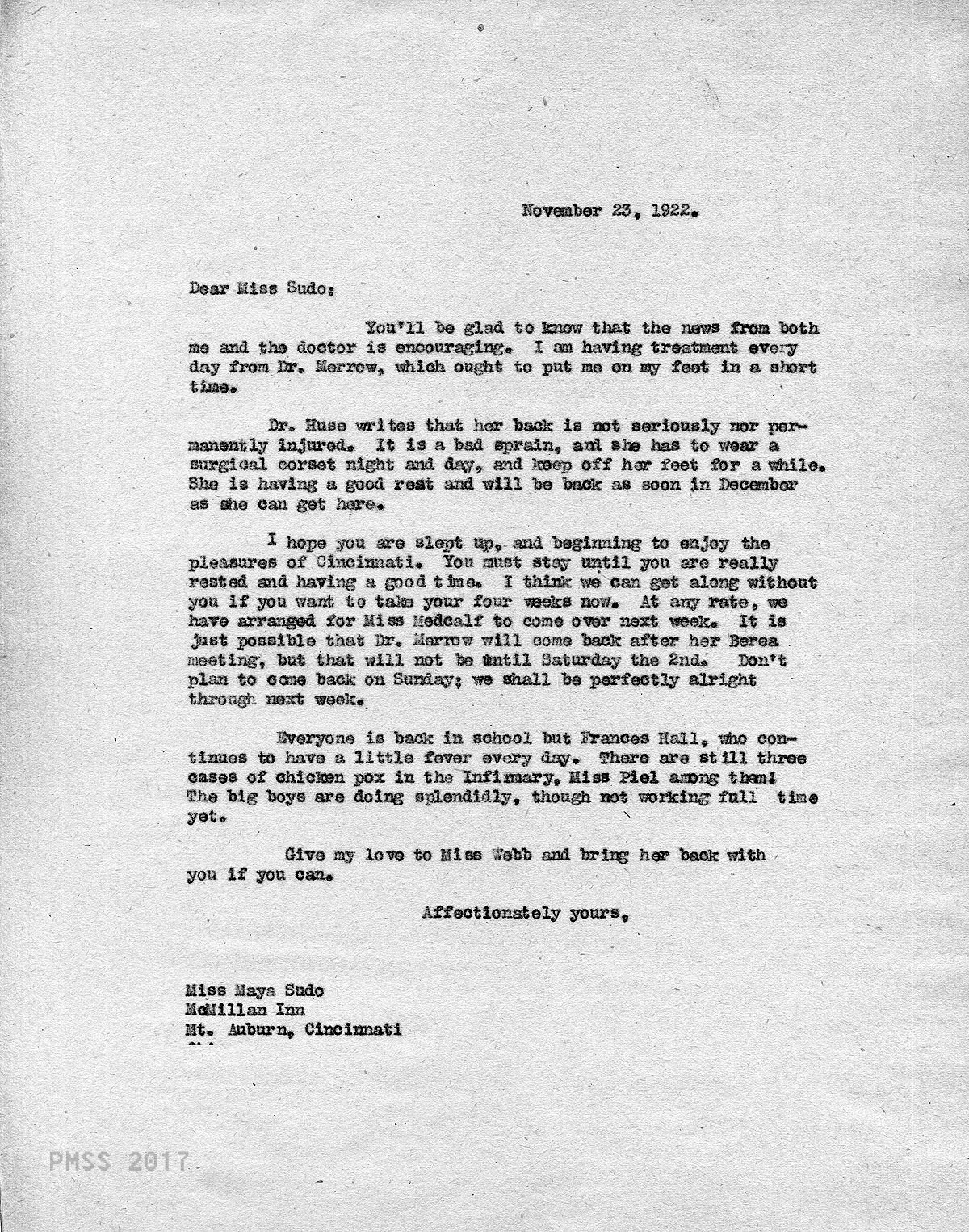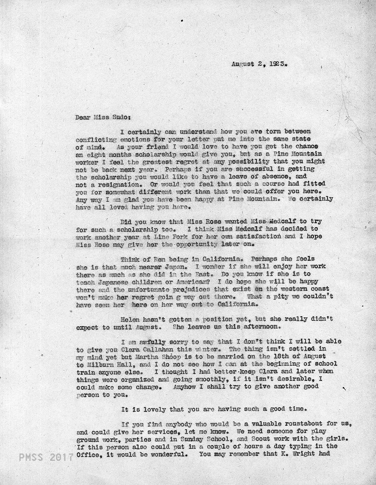 TAGS: Maya Sudo correspondence, nurses, teachers, industrial work trainers, Infirmary, Line Fork Medical Settlement, Medical Settlement Big Laurel