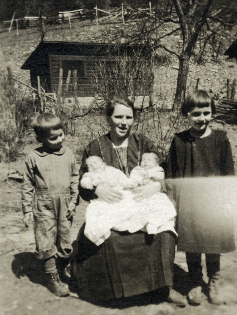 DELIA CREECH Photograph Album. Mildred Wilder with twins, Evelyn and Jimmy. [creech_d_album_A01_005c.jpg]