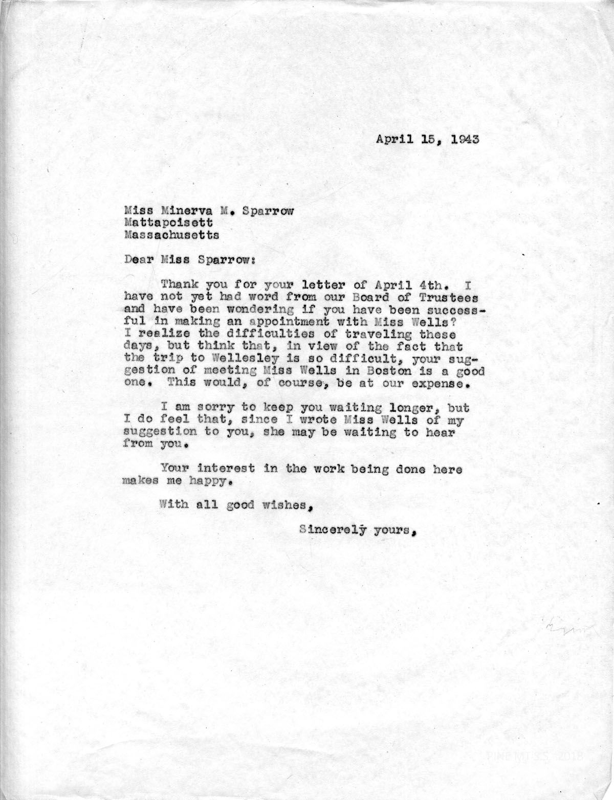TRANSCRIPTION: MINERVA M. SPARROW Correspondence I