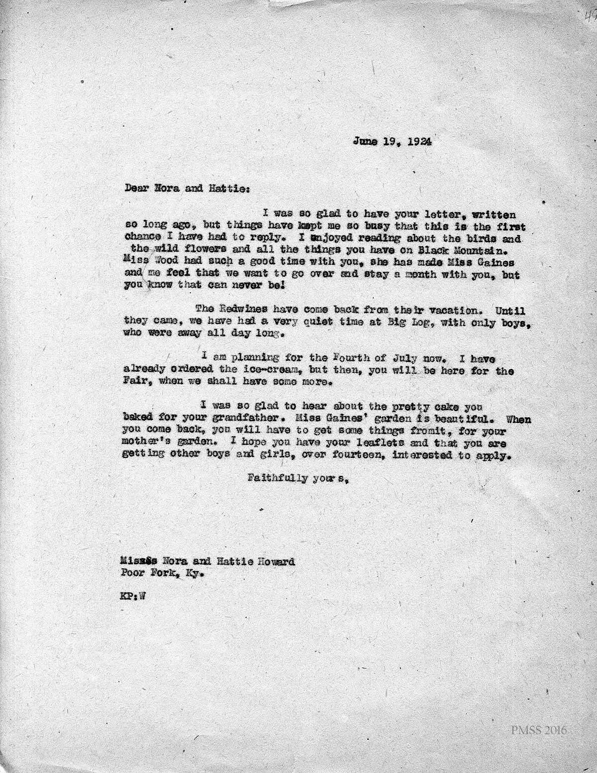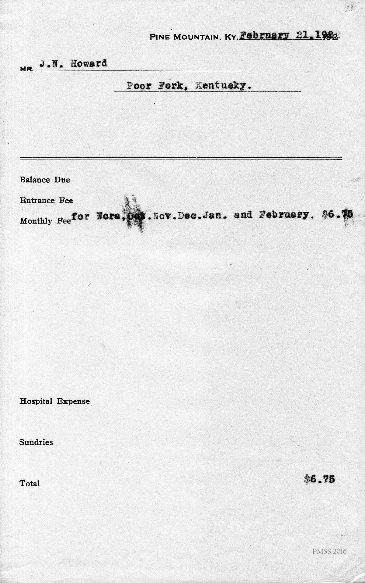 “[Identification of Item],” [Collection Name] [Series Number, if applicable]. Pine Mountain Settlement School Institutional Papers. Pine Mountain Settlement School, Pine Mountain, KY.