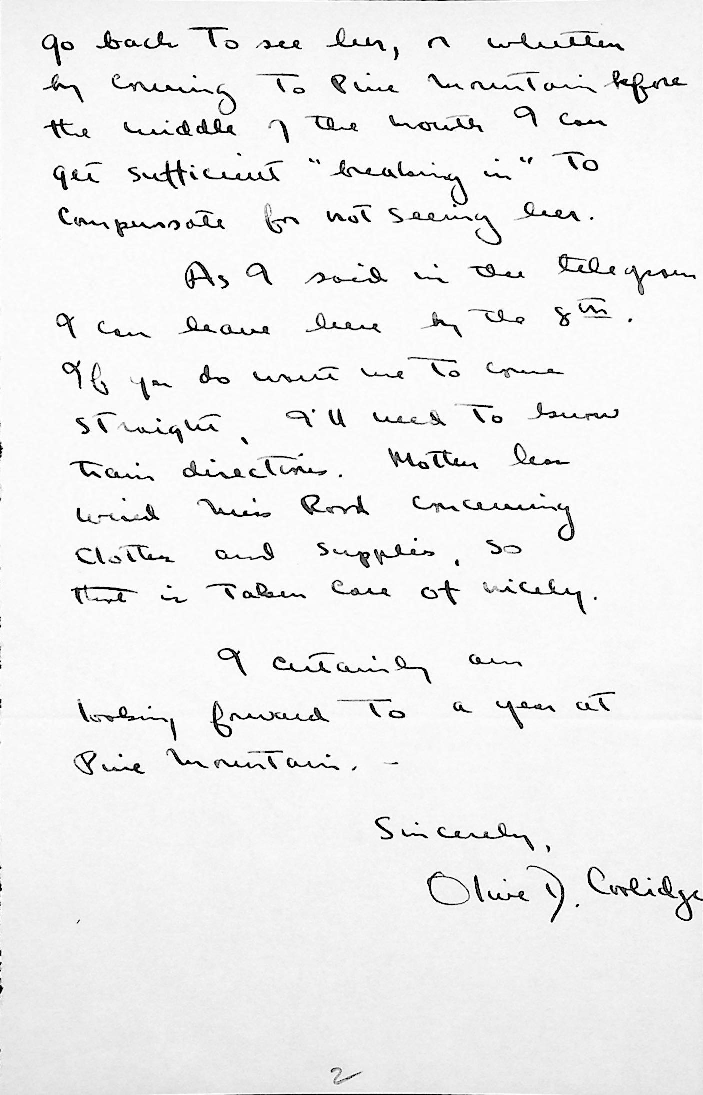 OLIVE COOLIDGE Correspondence 1941 August Pine Mountain Invitation