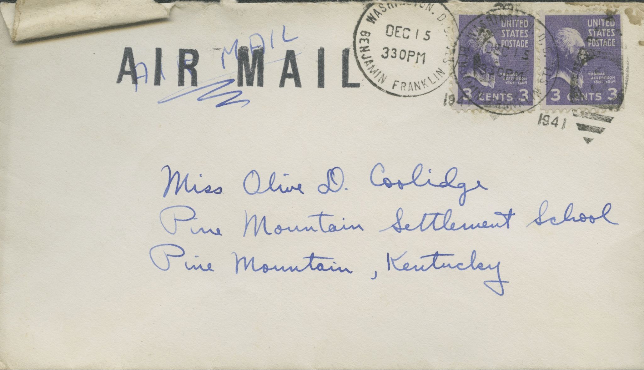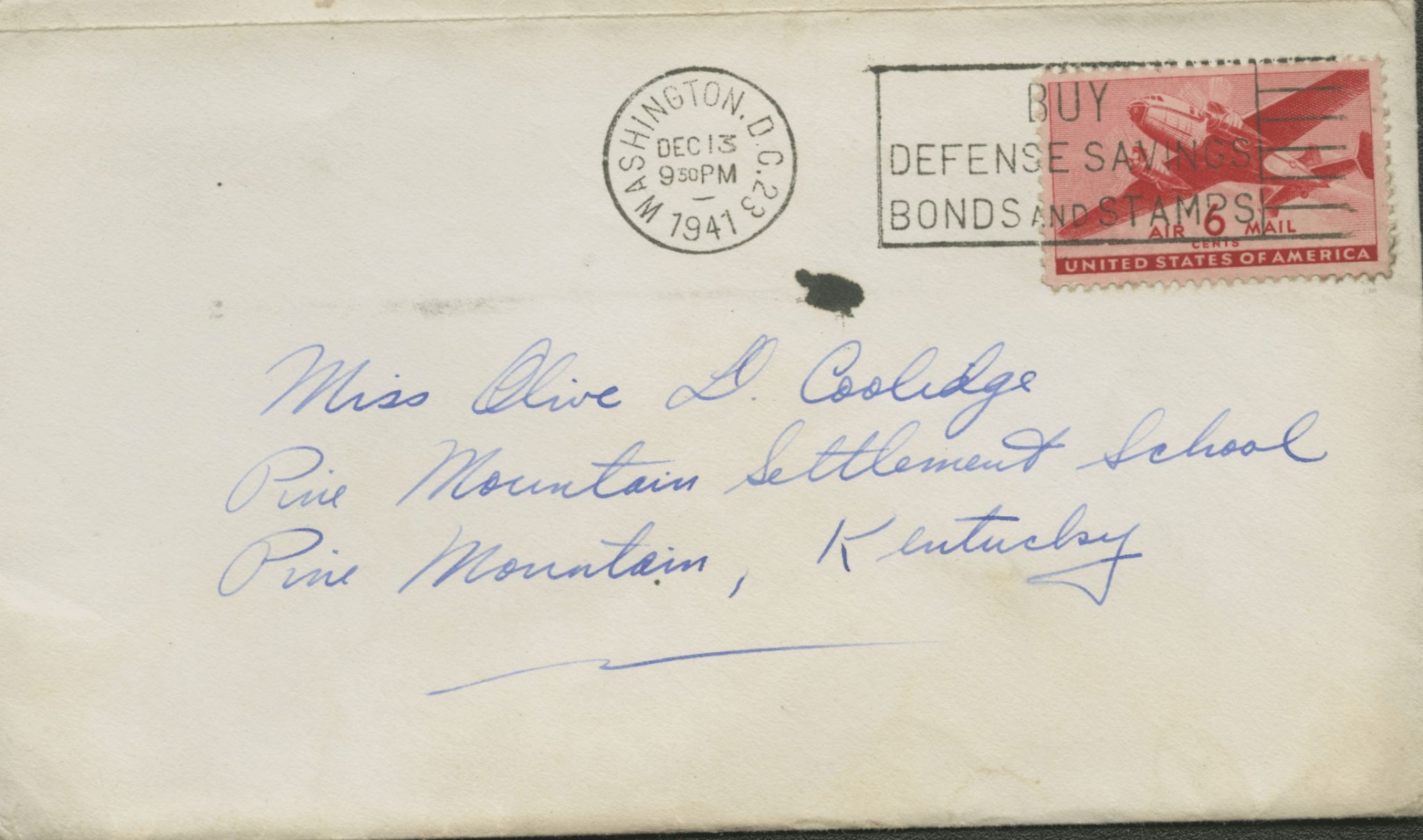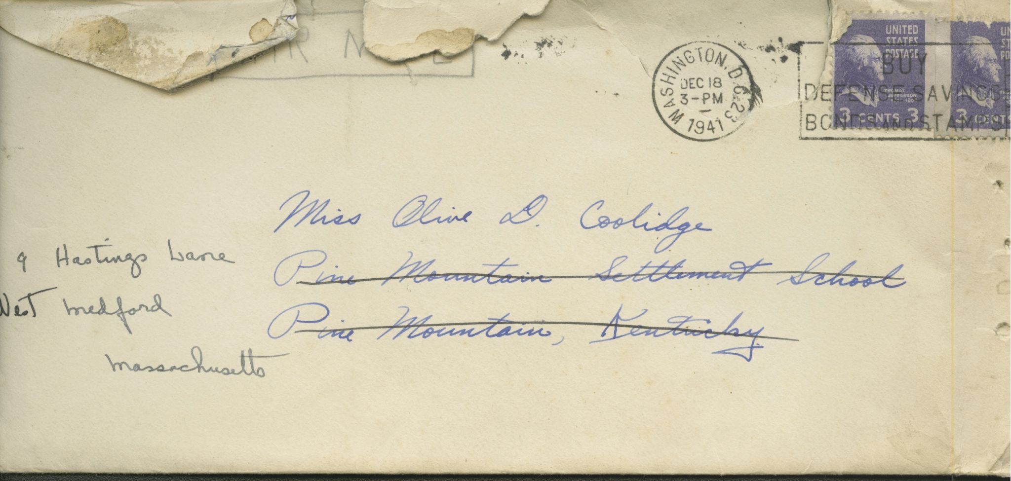 To Miss Olive Coolidge, Pine Mountain, Kentucky