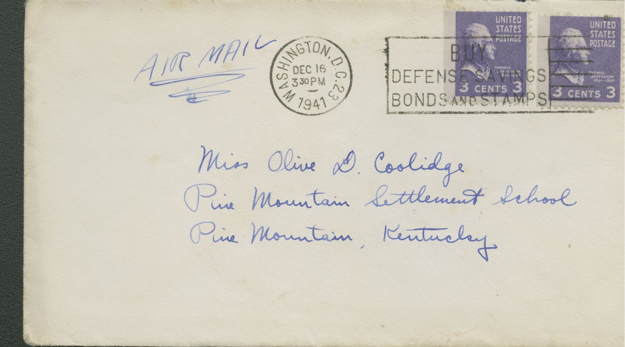 TAGS: Olive Coolidge, 1941 correspondence, Robert Butman, WWII, Pine Mountain, Washington D.C., Olive Dame Campbell, Russell Sage Foundation