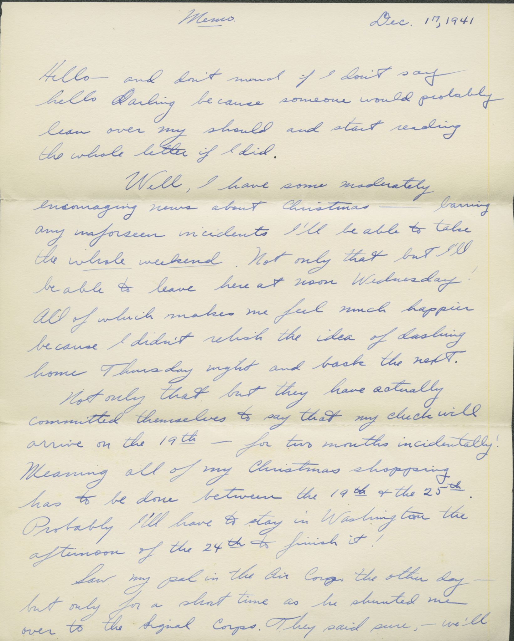 GALLERY: OLIVE COOLIDGE Correspondence 1941 Bob to Oggy DECEMBER