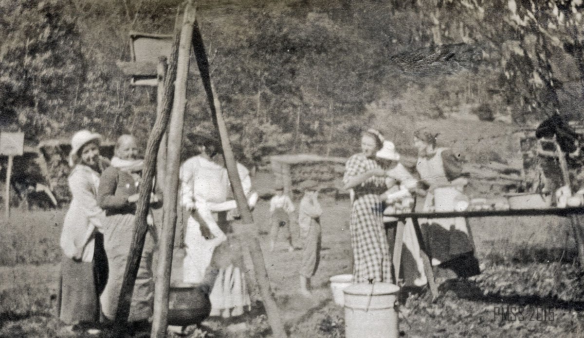 The Philip Roettinger Album consists of 101 pages with multiple photographs on each page. The album was prepared by Elisabeth Roettinger and her friend Ethel McCullough.  Elizabeth Roettinger was a summer worker at Pine Mountain Settlement School from 1914 until 1915. Her father Philip Roettinger served on the Board of Trustees of the School. Ethel McCullough was also a summer worker in 1914 and was an avid photographer. Her photographs are among the those gathered from other Pine Mountain workers that comprise this album.