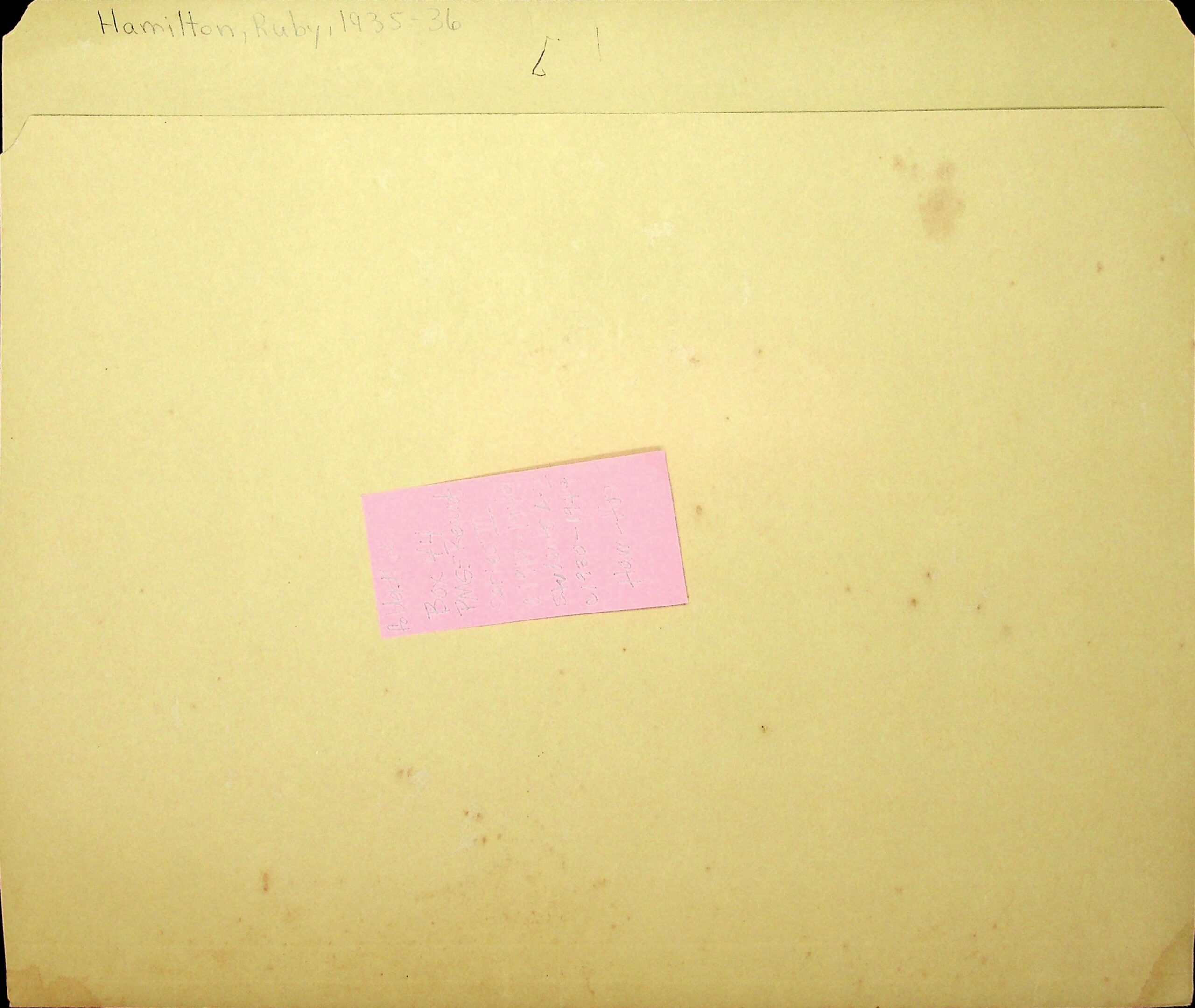 30 Image of file folder, labeled “Hamilton, Ruby, 1935-36.”