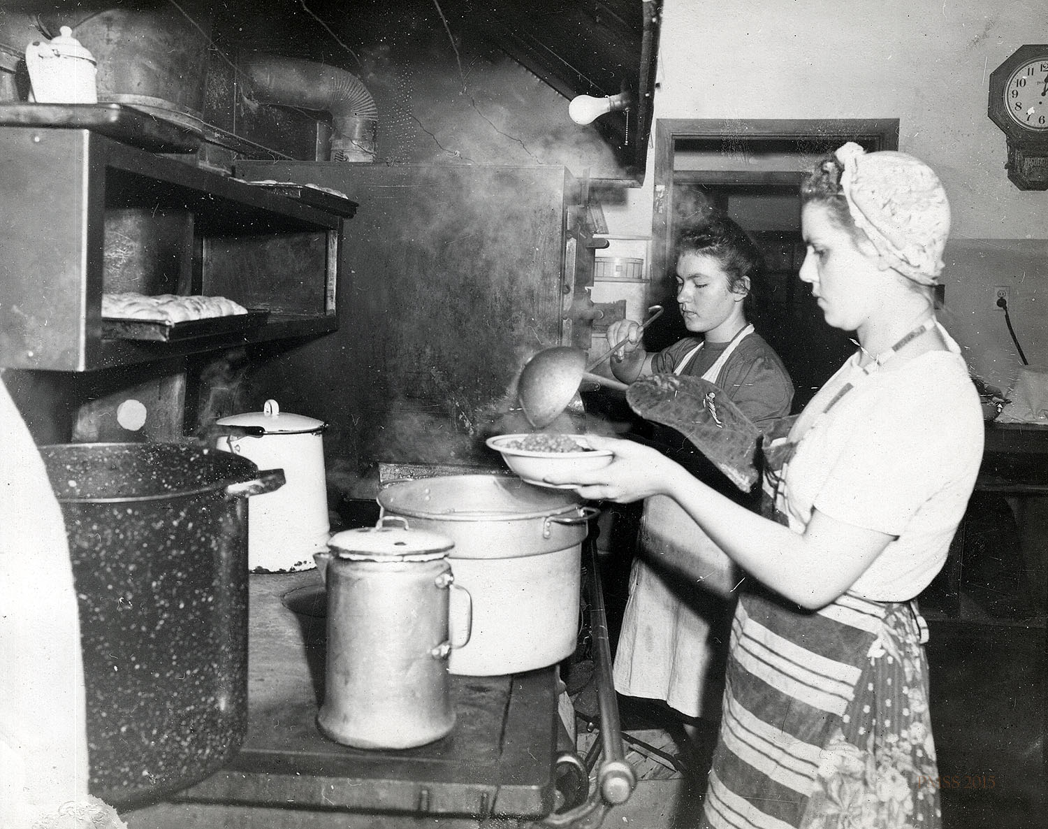 According to Brit Wilder, Ruth Gaines came to the School as a secretary “but the job had been taken” so she was hired as a dietitian in charge of cooking, canning and gardening. Some of those who assisted her were: Emma Collins (1916), Imogene Costello (1918-1919), Emma Jane (Emily) Hill Creech (1921-1934), and Lena Swinerton (1920-1921).