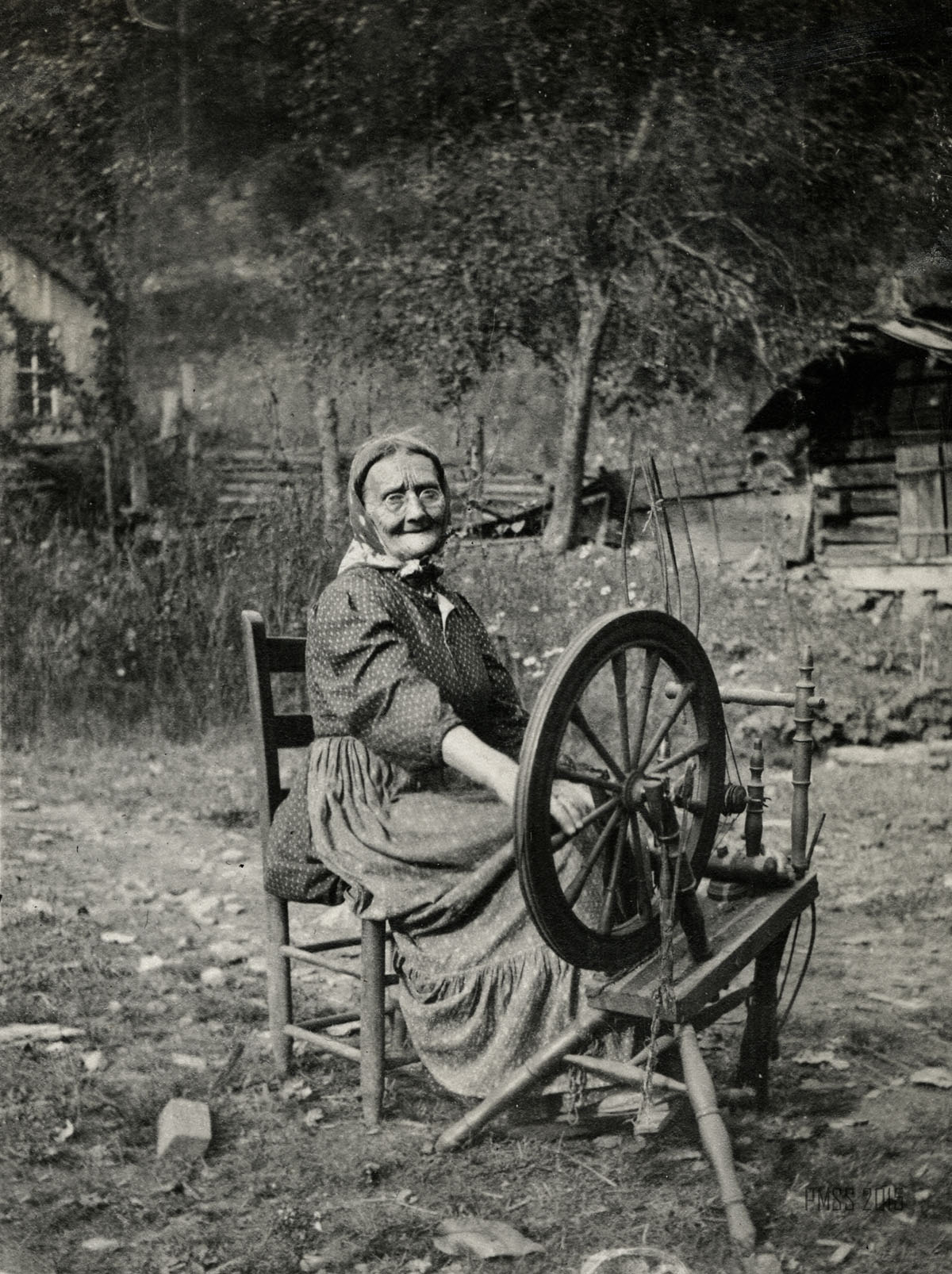 - Aunt Sal spinning at the small wheel to right. [Vl_37_1197a.jpg]