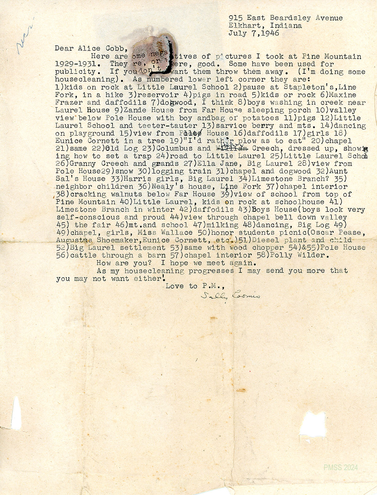 “Here are the negatives of the pictures I took at Pine Mountain 1920-1931. They are, or were, good. Some have been used for publicity. If you don’t want them throw them away. (I’m doing some housecleaning.)”