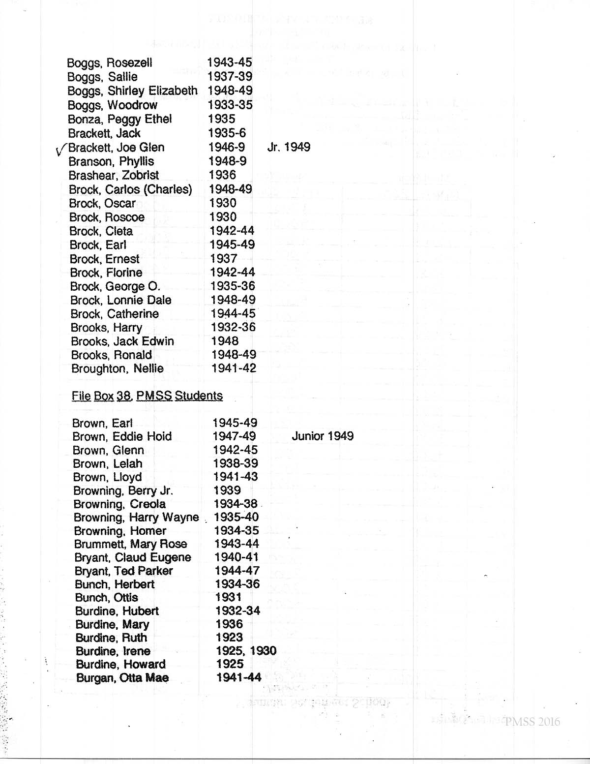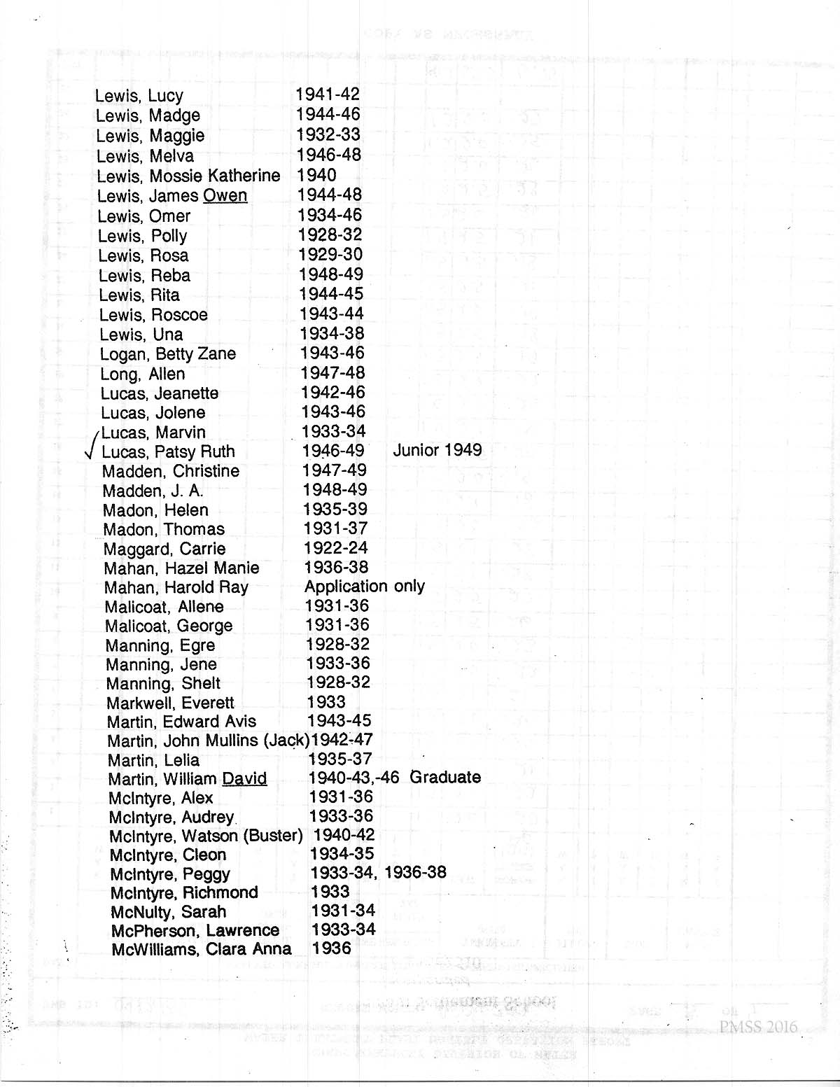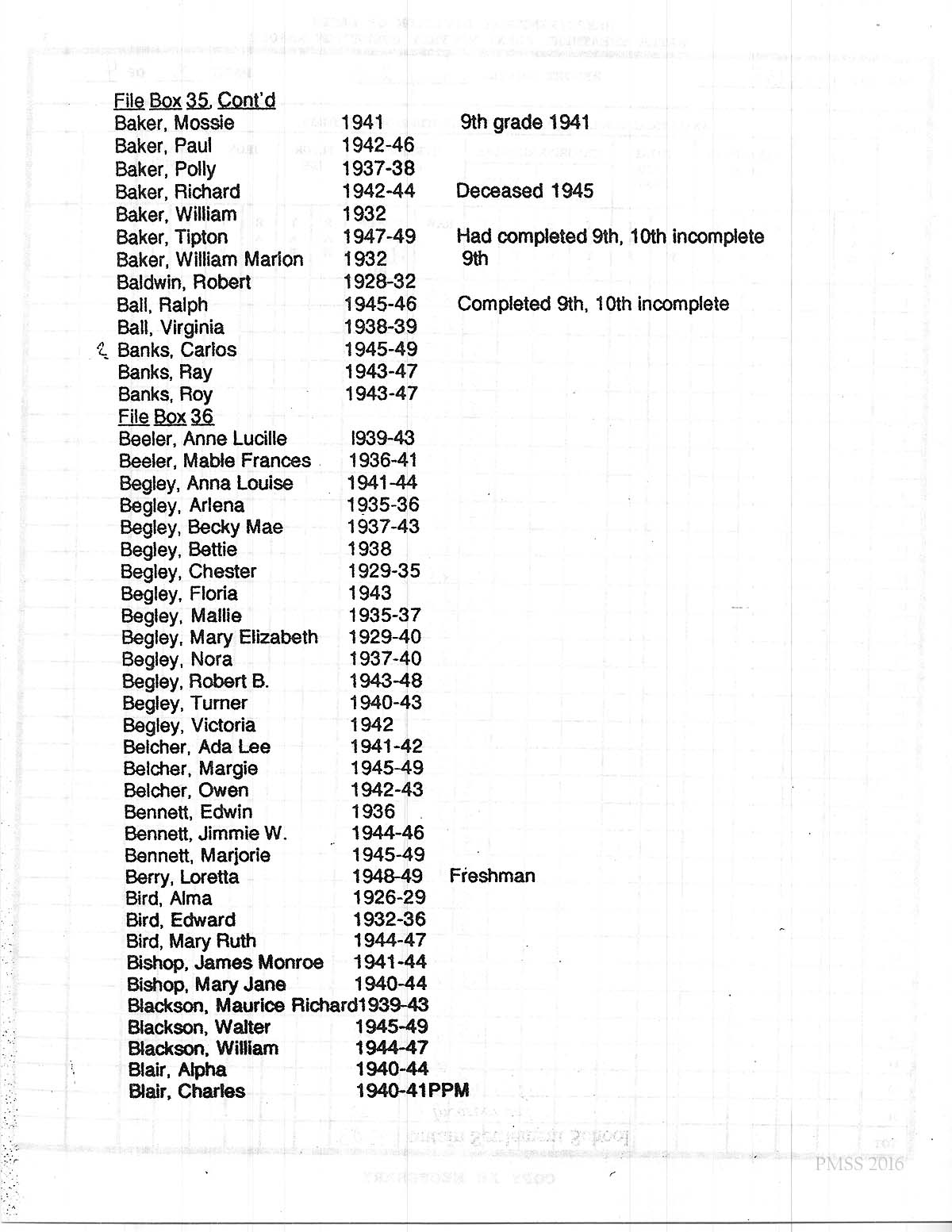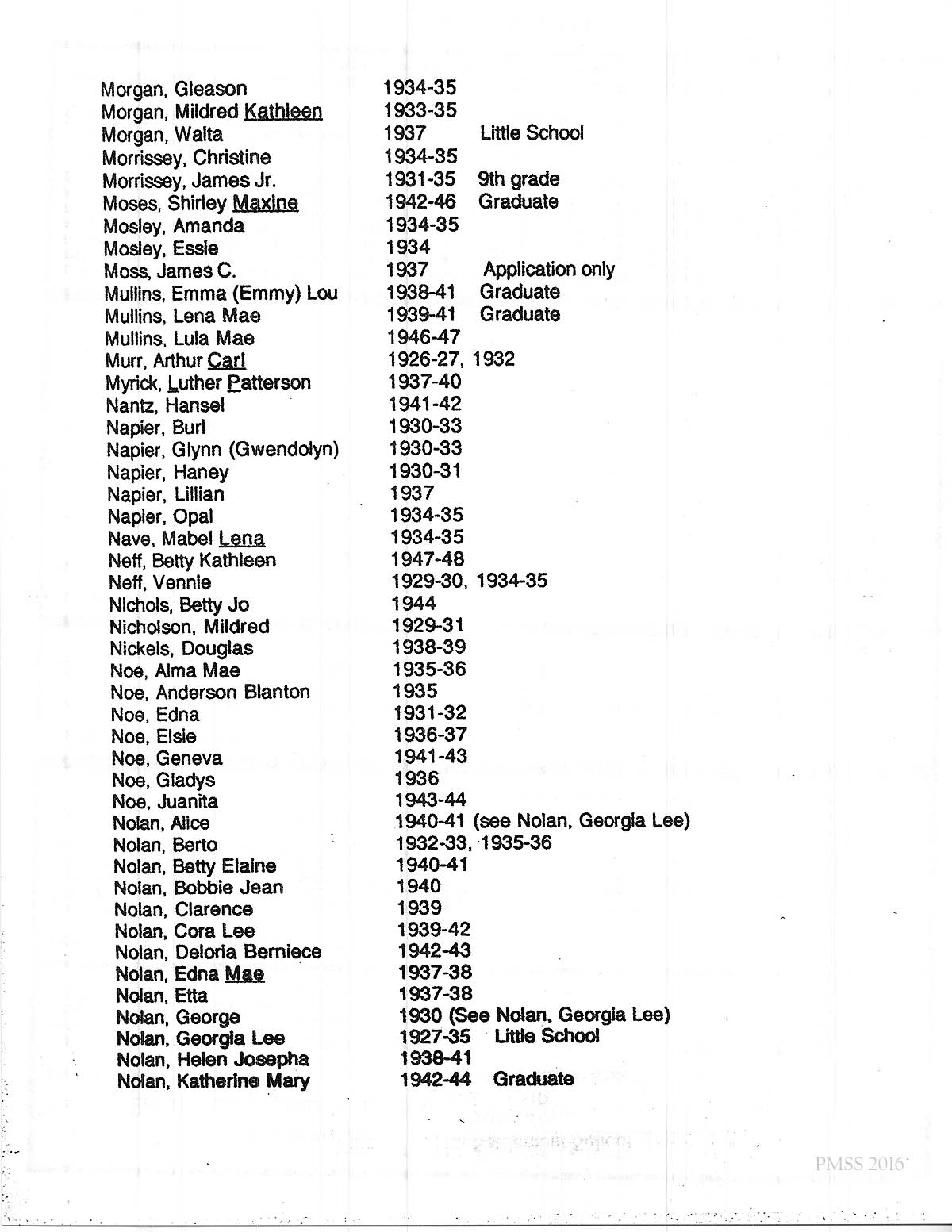 TAGS: Early list of PMSS boarding school students, student lists, grades, years at school, Pine Mountain Settlement School, Harlan County KY
