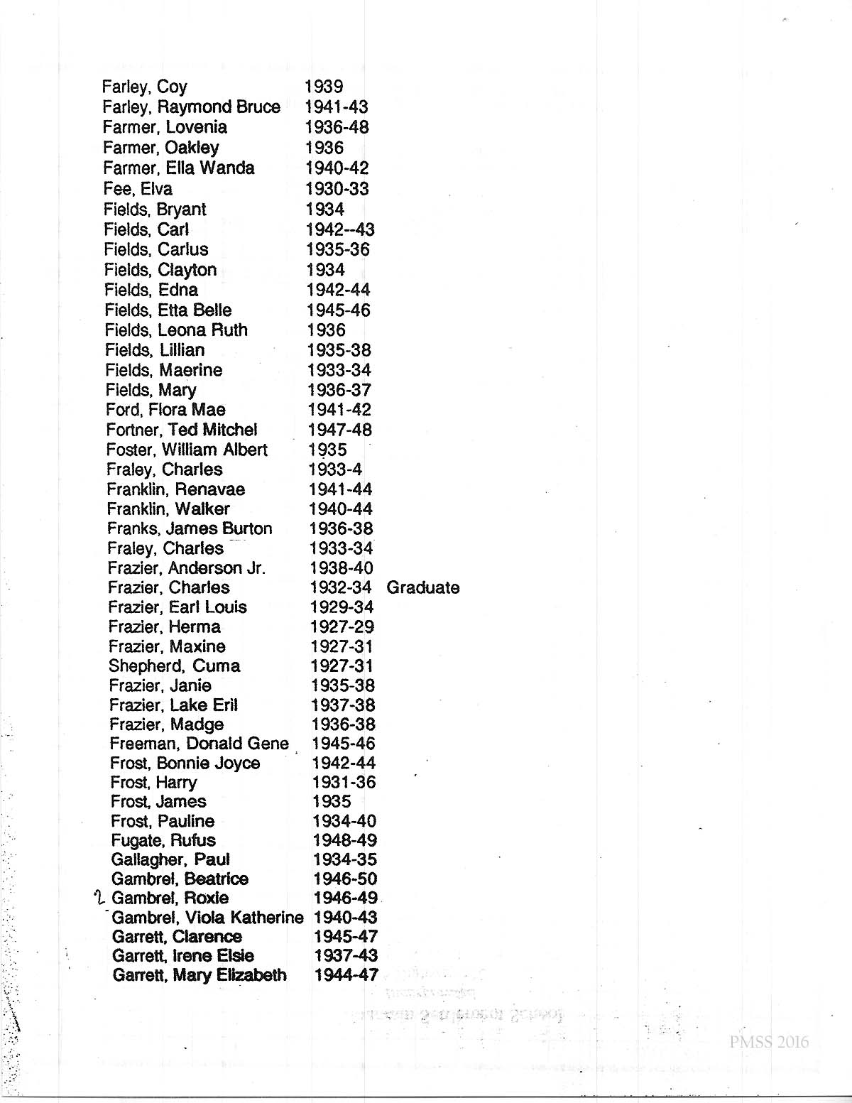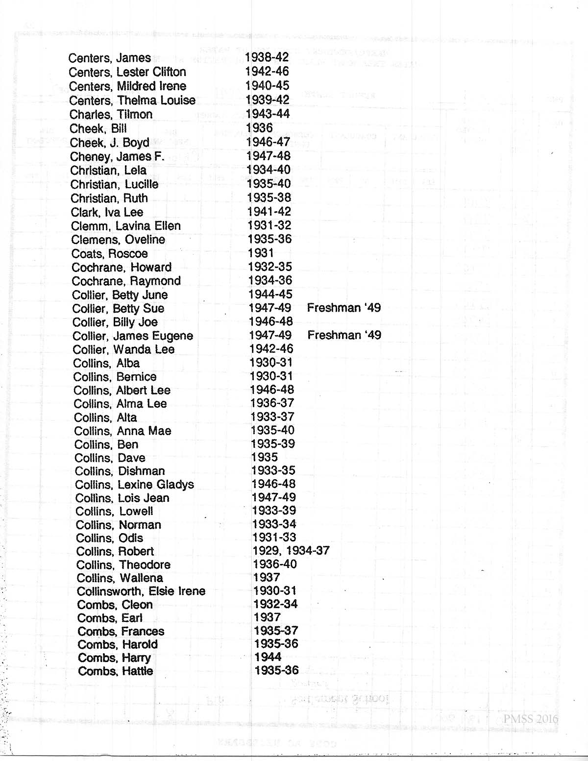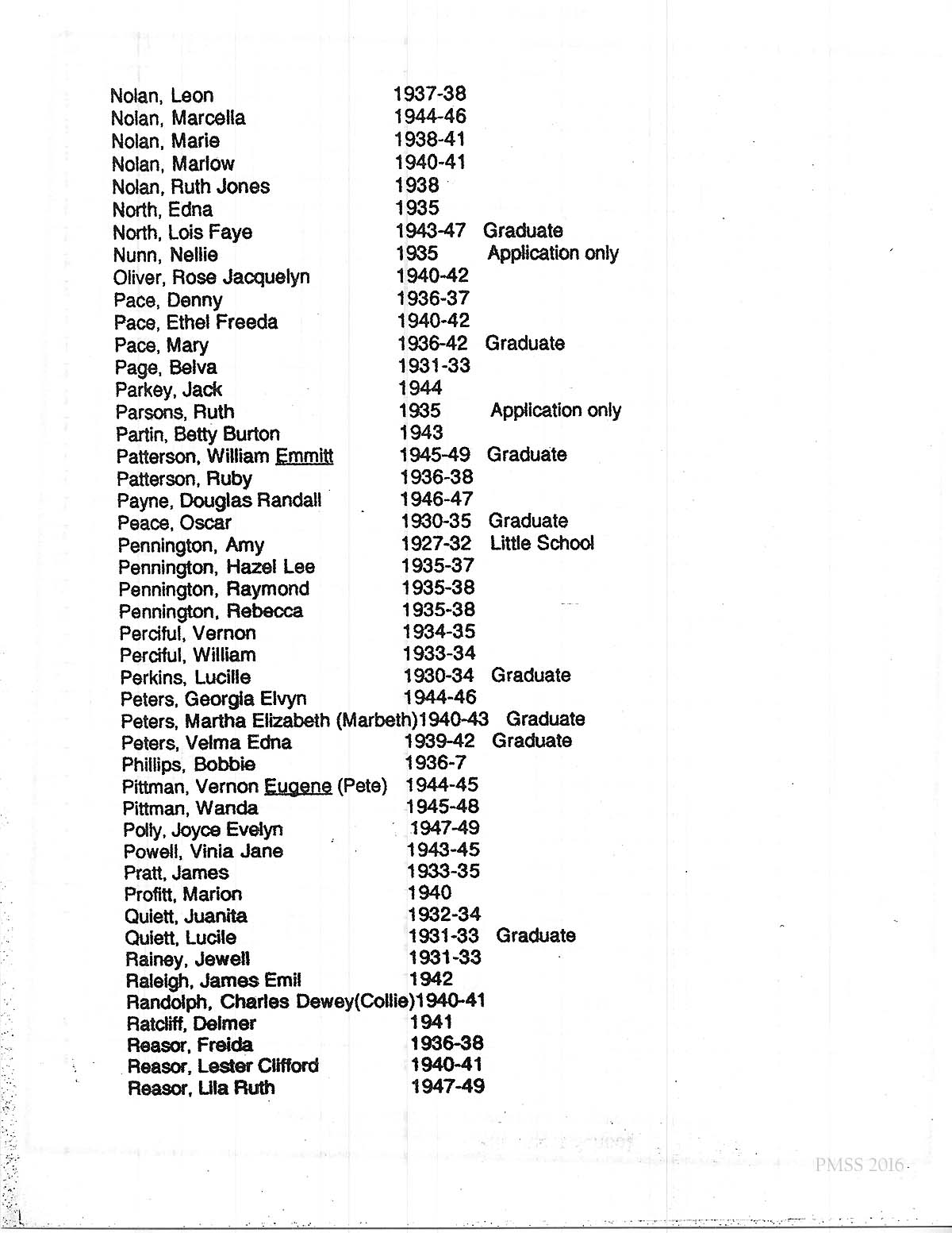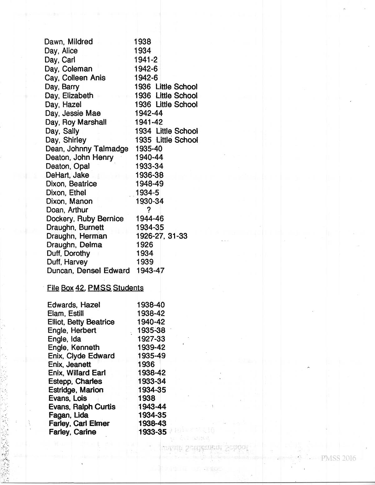 TAGS: Early list of PMSS boarding school students, student lists, grades, years at school, Pine Mountain Settlement School, Harlan County KY