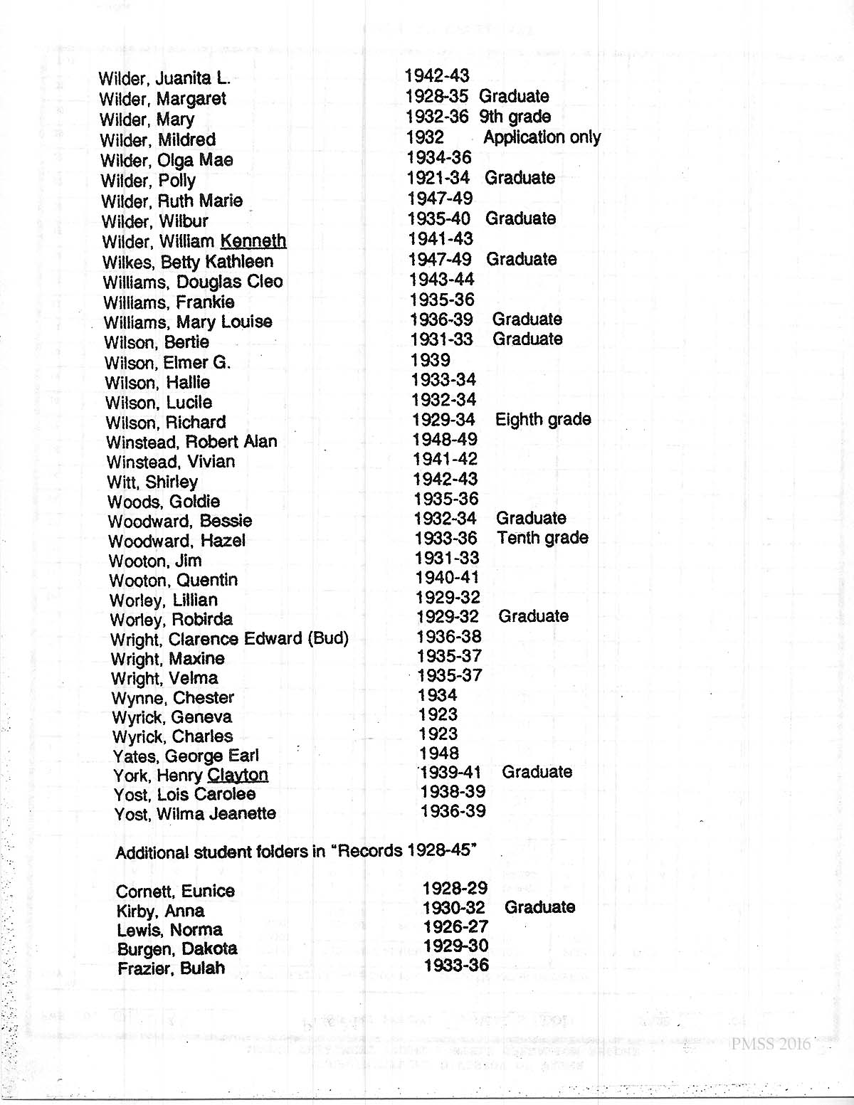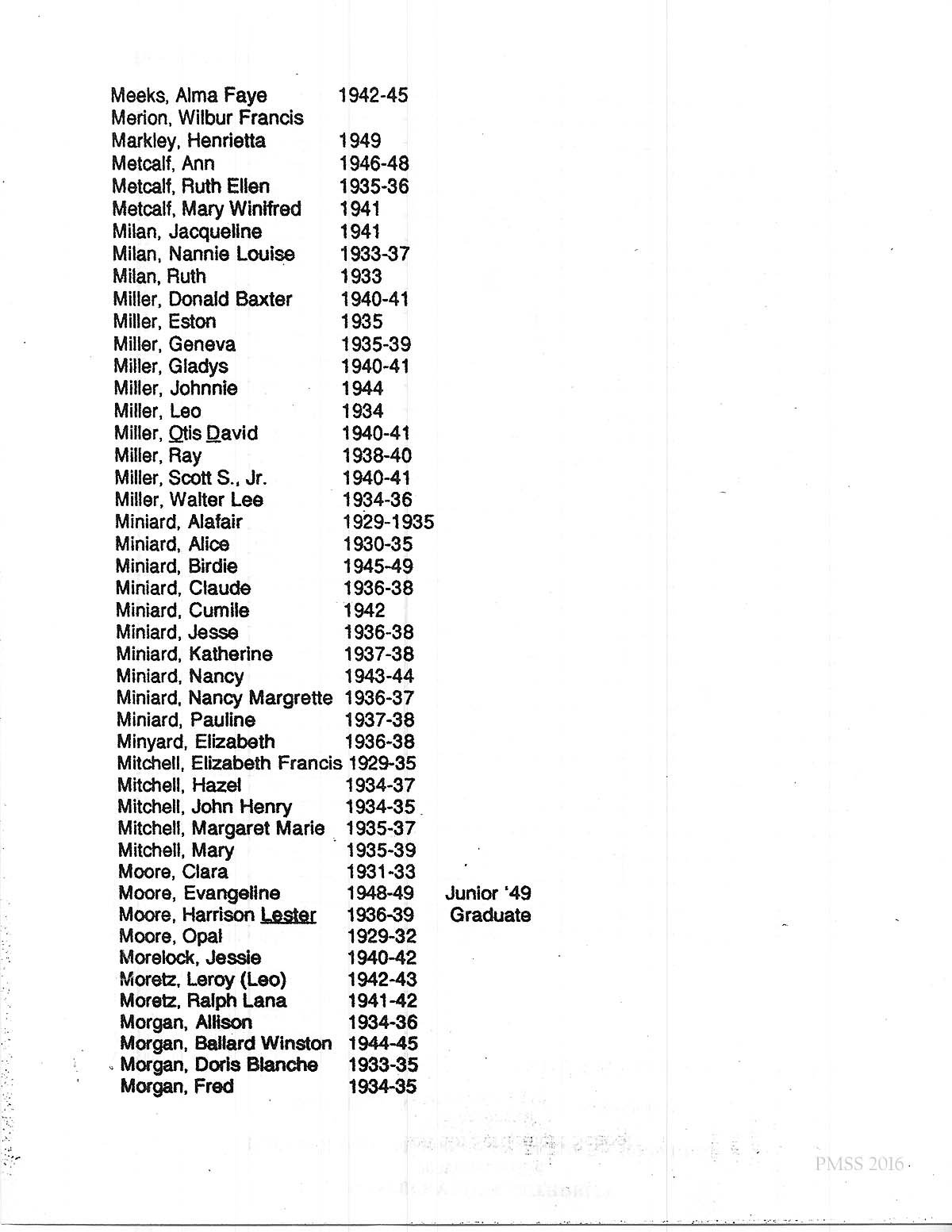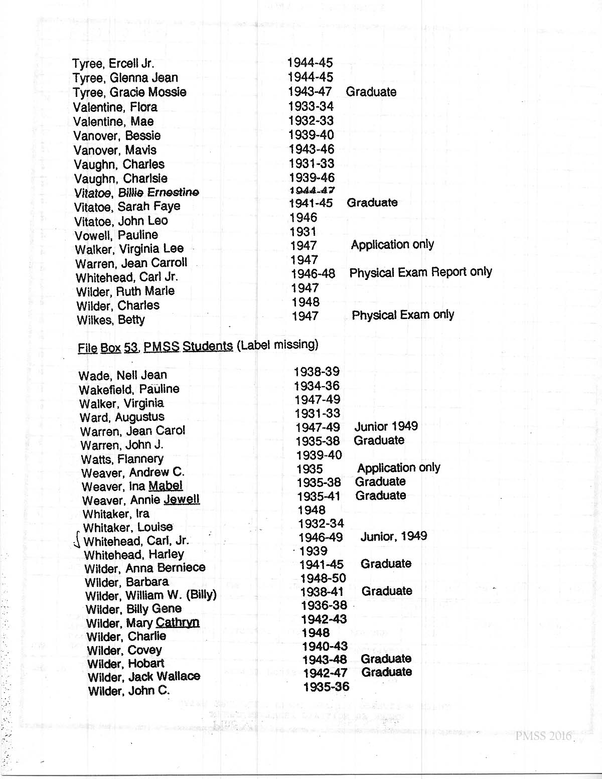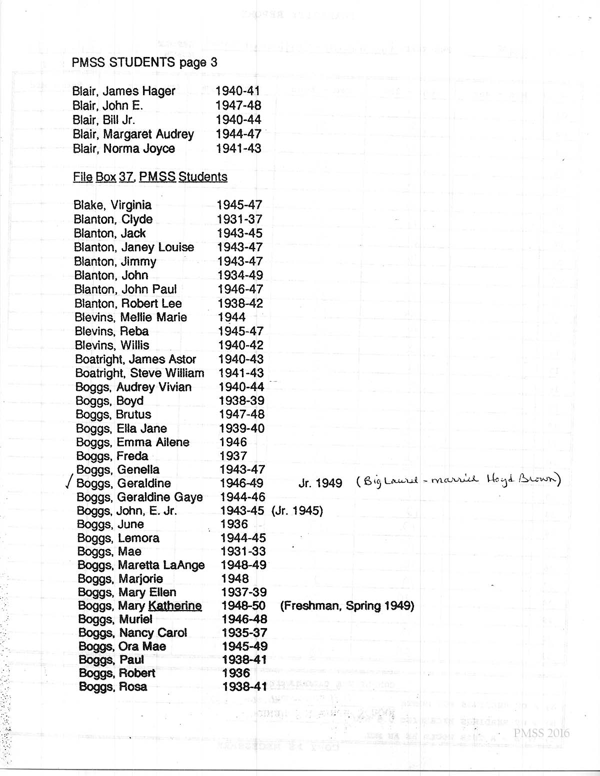 BOARDING SCHOOL Students Guide 1929-1949 – Flat alphabetical list of student names