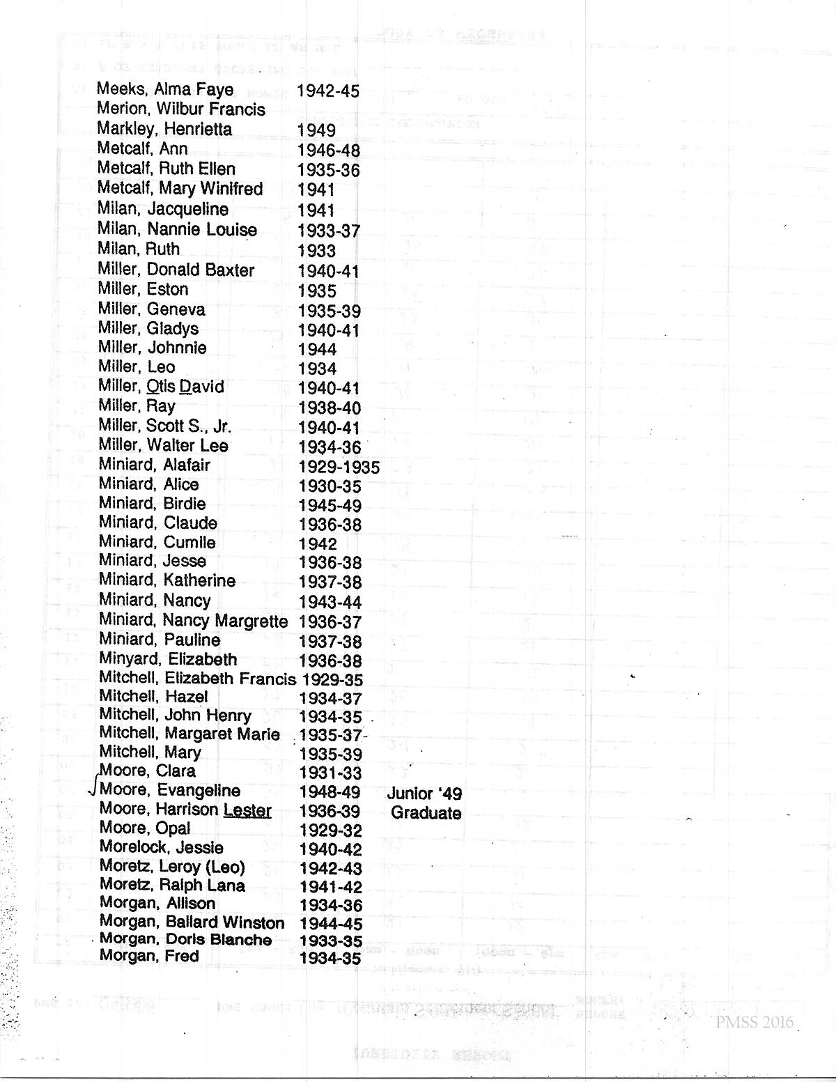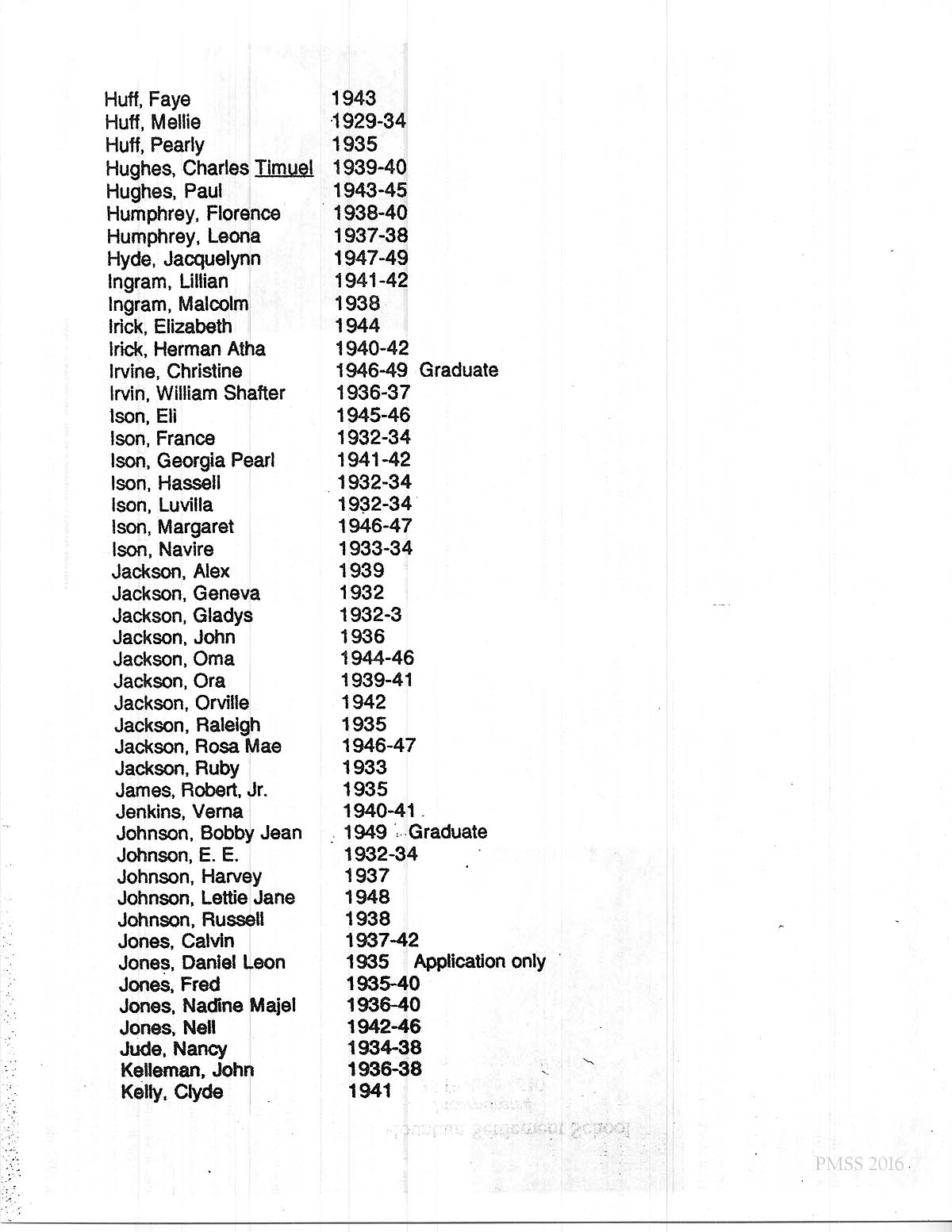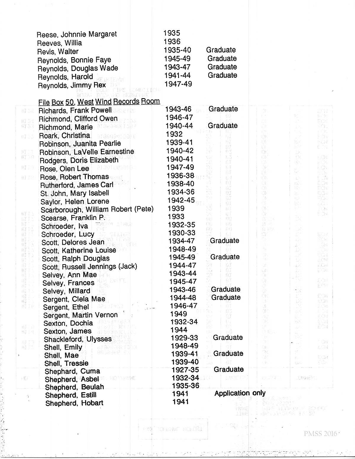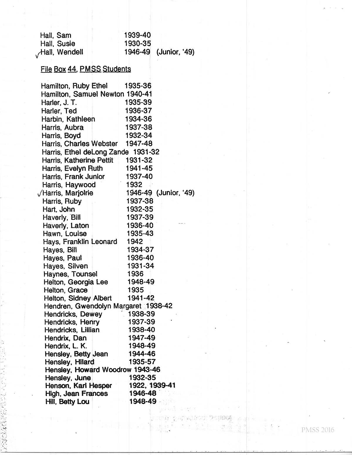 BOARDING SCHOOL Students Guide 1929-1949 – Flat alphabetical list of student names
