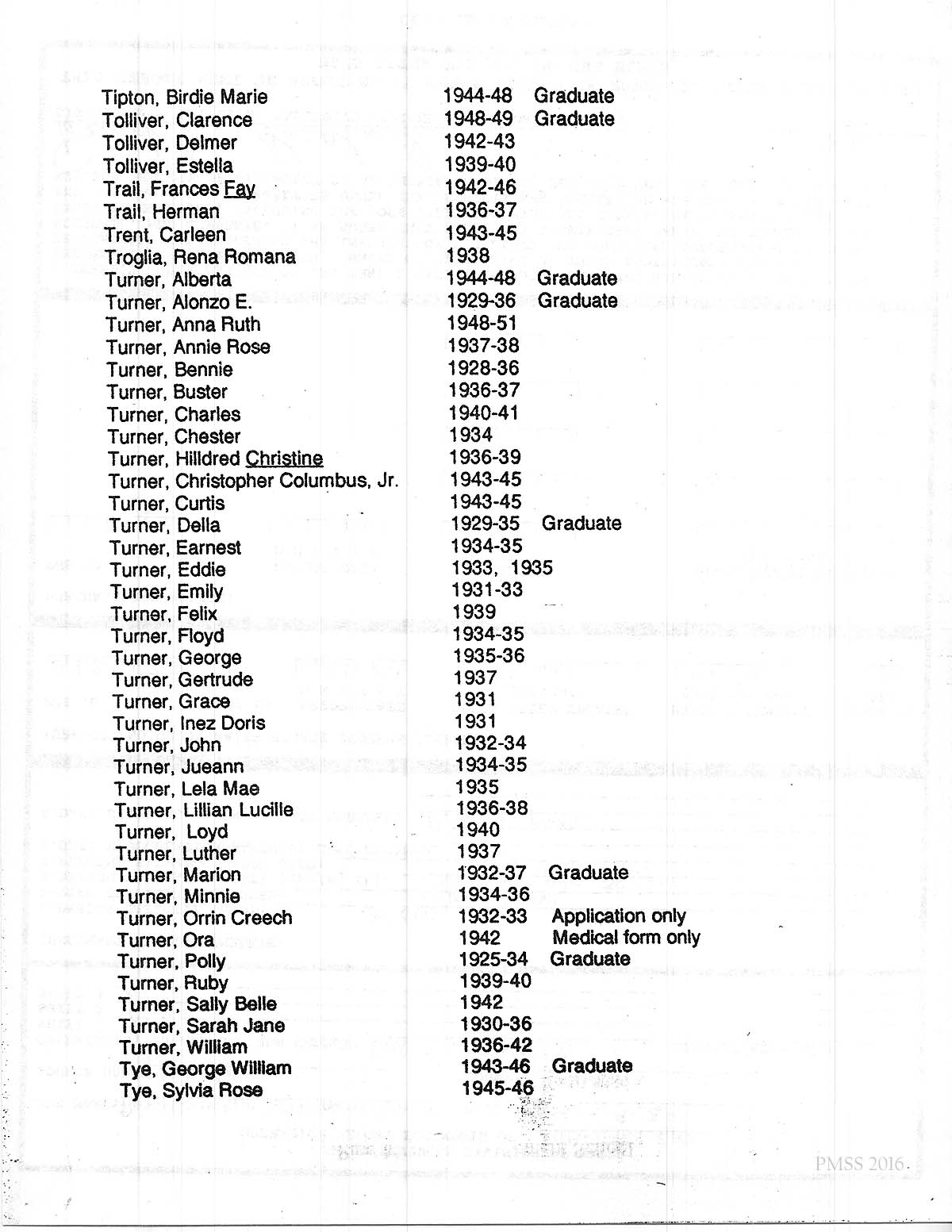 and their years of attendance