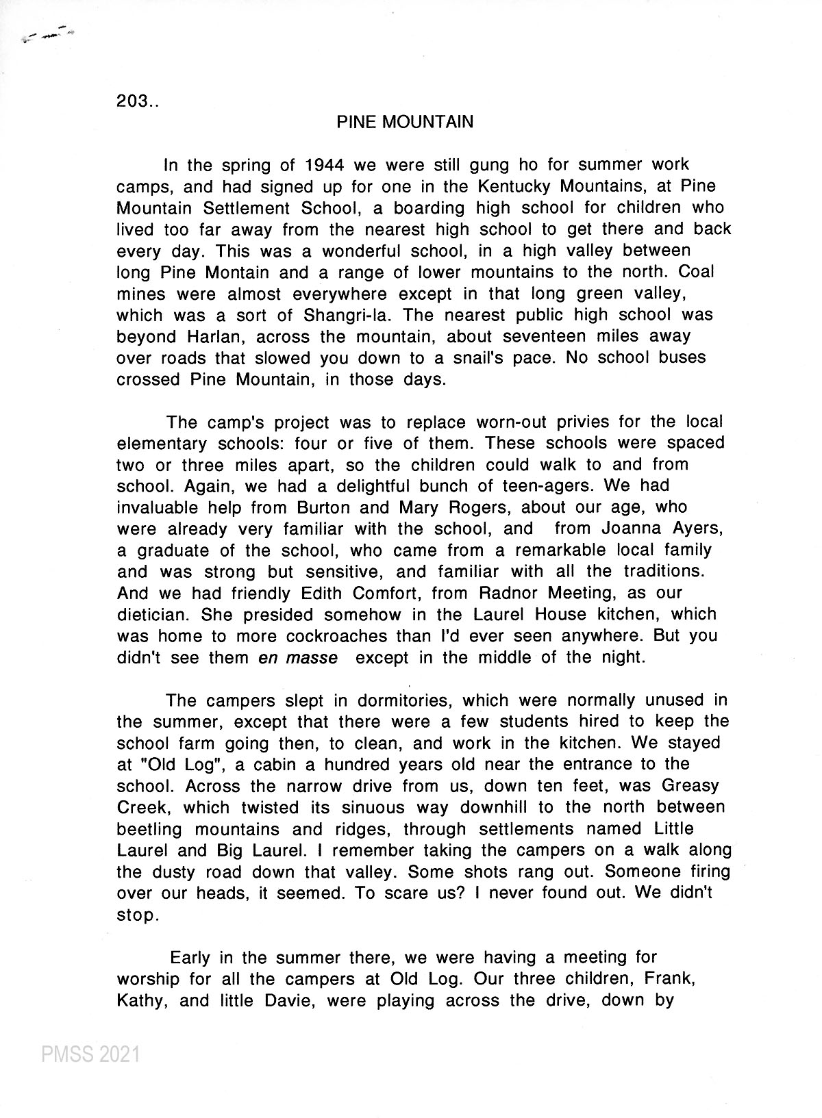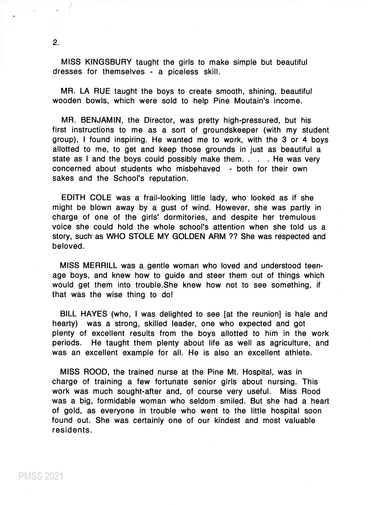 MEMORIES OF SOME PINE MOUNTAIN SCHOOL WORKERS 1944-1947