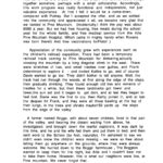 Appreciation of the community grew with experiences such as the children’s railroad expedition. There had been a temporary railroad track coming to Pine Mountain for timbering, actually crossing the mountain by a long diagonal climb to the west. There were stretches of ties and small trestles over gullies, and Frank [was] determined to explore it — and invited Kathie to go, and of course Davie wanted to go, too. They didn’t bother to tell anyone. Well, the track had run through the woods, at first along the edge of the slope, then gradually climbing. They found enough old ties and remains of trestles for a while, but then these landmarks got fewer and fewer [as] the sun set and it began to get dark, and at last they began to feel lost. Davie was the first to cry; then Kathy joined in, and at last the despair hit Frank, and they were all three bawling at the top of their lungs, in the trees and shrubs maybe 150 yards up the slope from the edge of the valley.