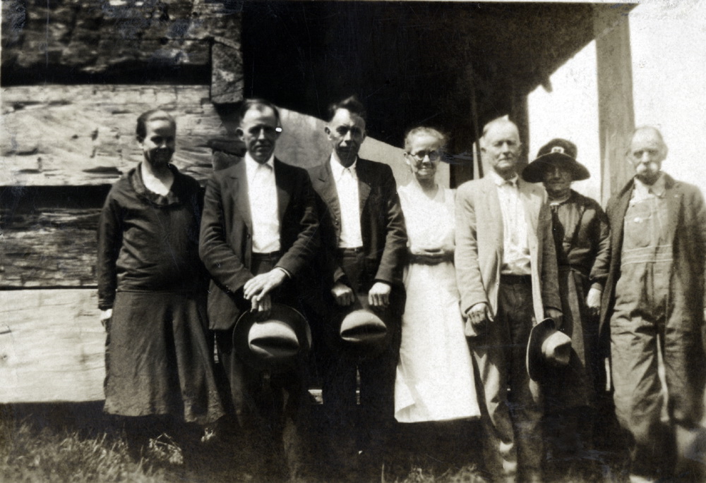 - The Creech Cabin with members of the Creech Family to far right. [mott_3495_004-.jpg]