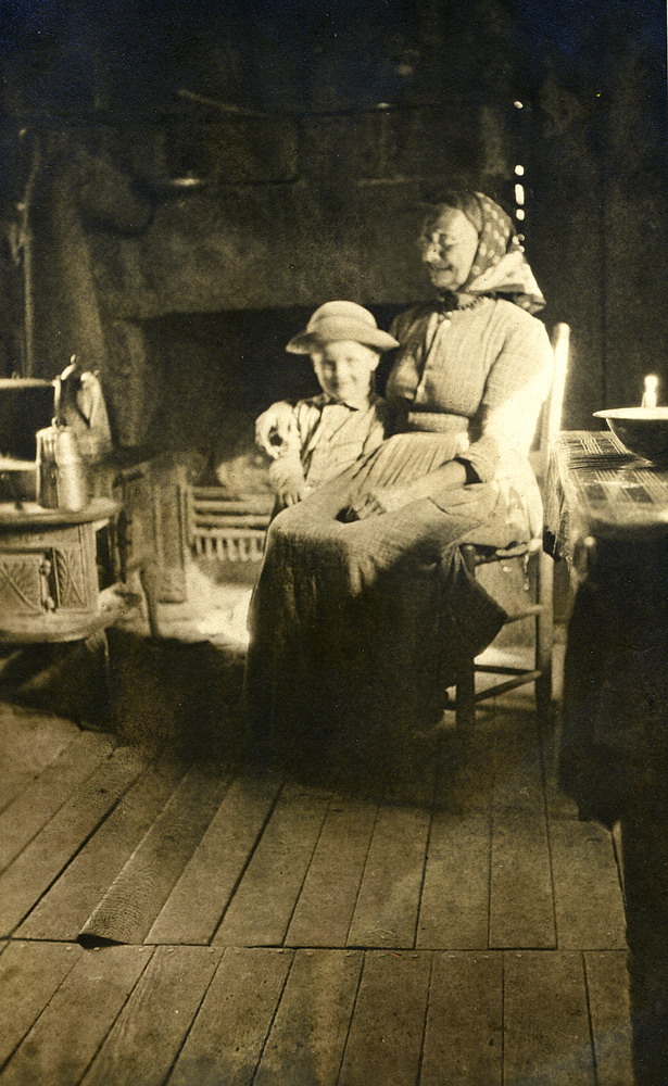 - Friends & Family: VI 37 Aunt Bet Scott (Aunt Sal’s sister) with blond child in front of fireplace and “shucky beans” hanging above the two. (Aunt Sal and young Brit Wilder with dried vegetables behind them.) [Vl_37_1185.jpg]
