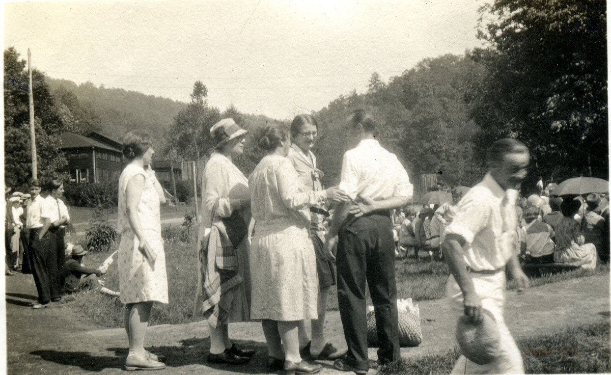 - “Aunt Sal’s Day, 1930. Mrs. Wilder, Mrs. Creech, Squire Creech, Miss Gaines, Norma, Mrs. Lewis, Mrs. Creech, Woodrow, Edmund Napier.” [kingman_074a.jpg]