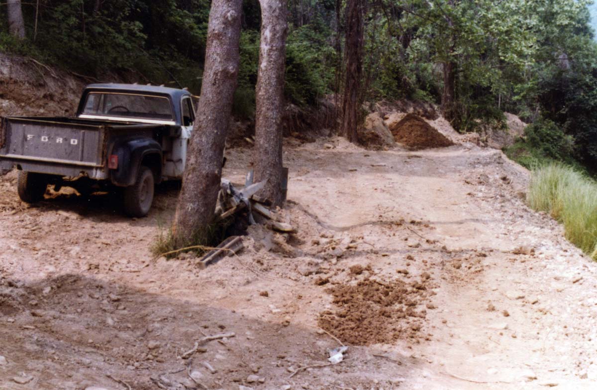 - William Hayes Cabin. Trailer used during construction with cabin in progress. Single cabin construction. No kitchen or upper bedrooms. [fern0112.jpg]