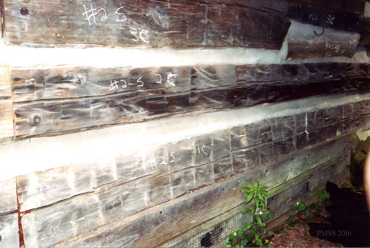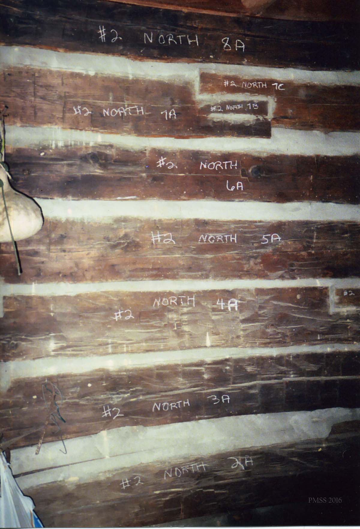 - William Hayes Cabin. Stored in PMSS Barn, c. 2008. Patrick Kennedy, consultant, 2013. [IMG_1932.jpg]