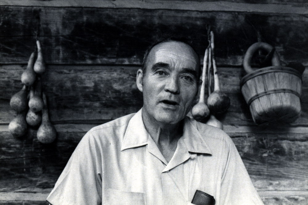 - John Hayes on porch of Hayes cabin at Viper, KY.