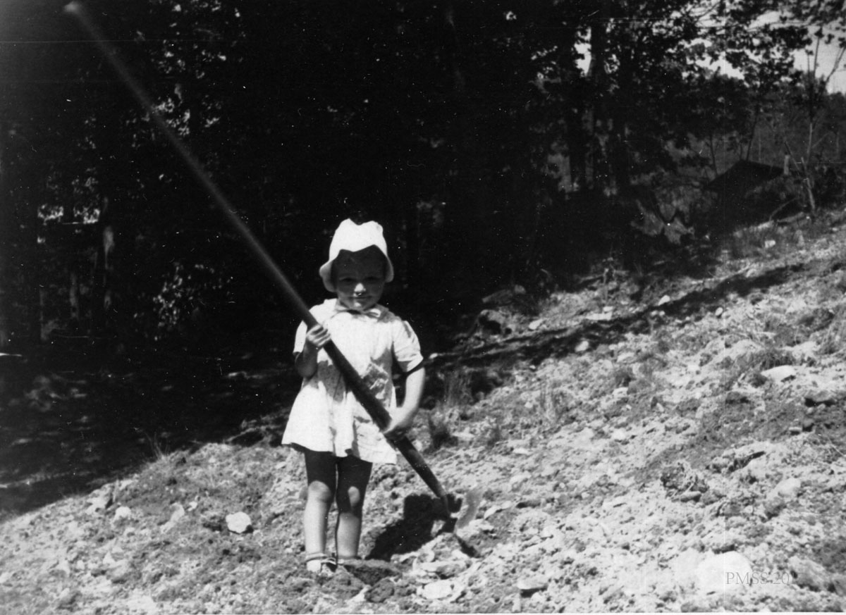 - Marguerite, younger sister of John Spelman III, at Spruce Point, 1940. Photo, William Hayes. [grand_marais_26.jpg]
