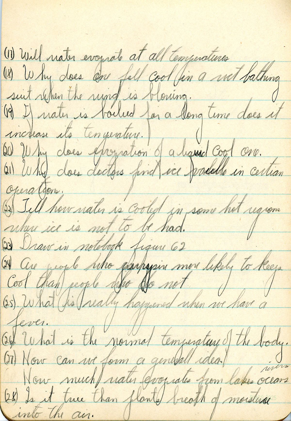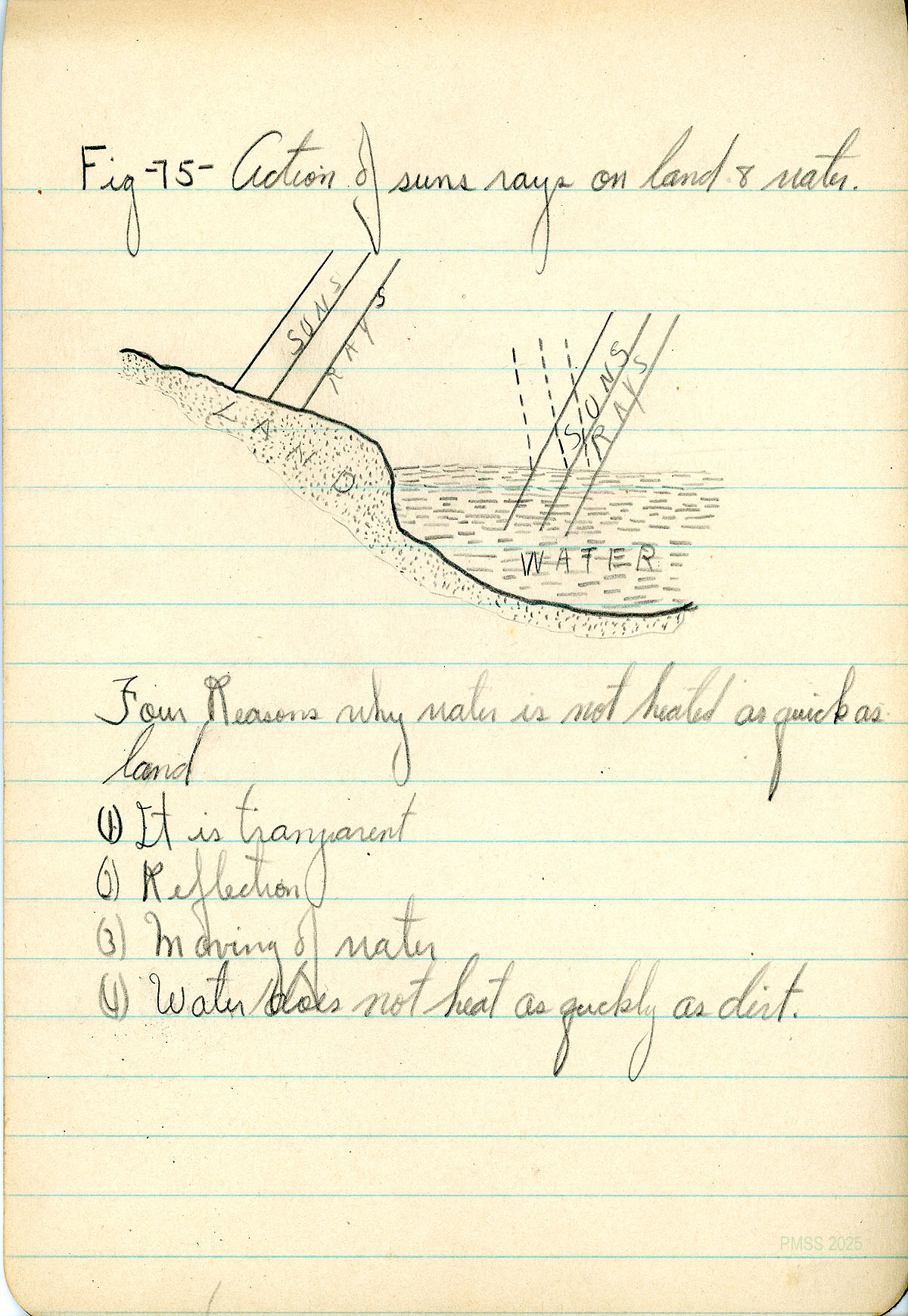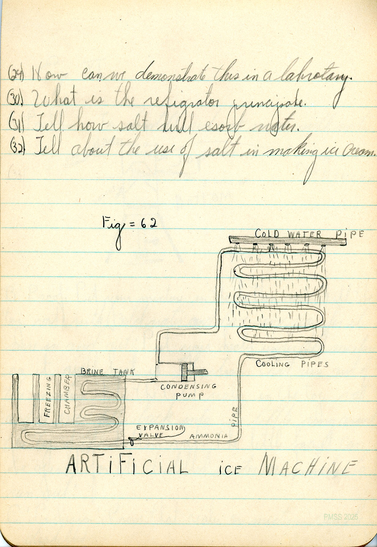 TAGS: William Hayes, Bill Hayes, classroom notebook, drawings, insects, water faucets, siphon, hydraulic press, Archimedes’ Principle, artificial ice machine, mosquitoes, house fly, literature, reading list