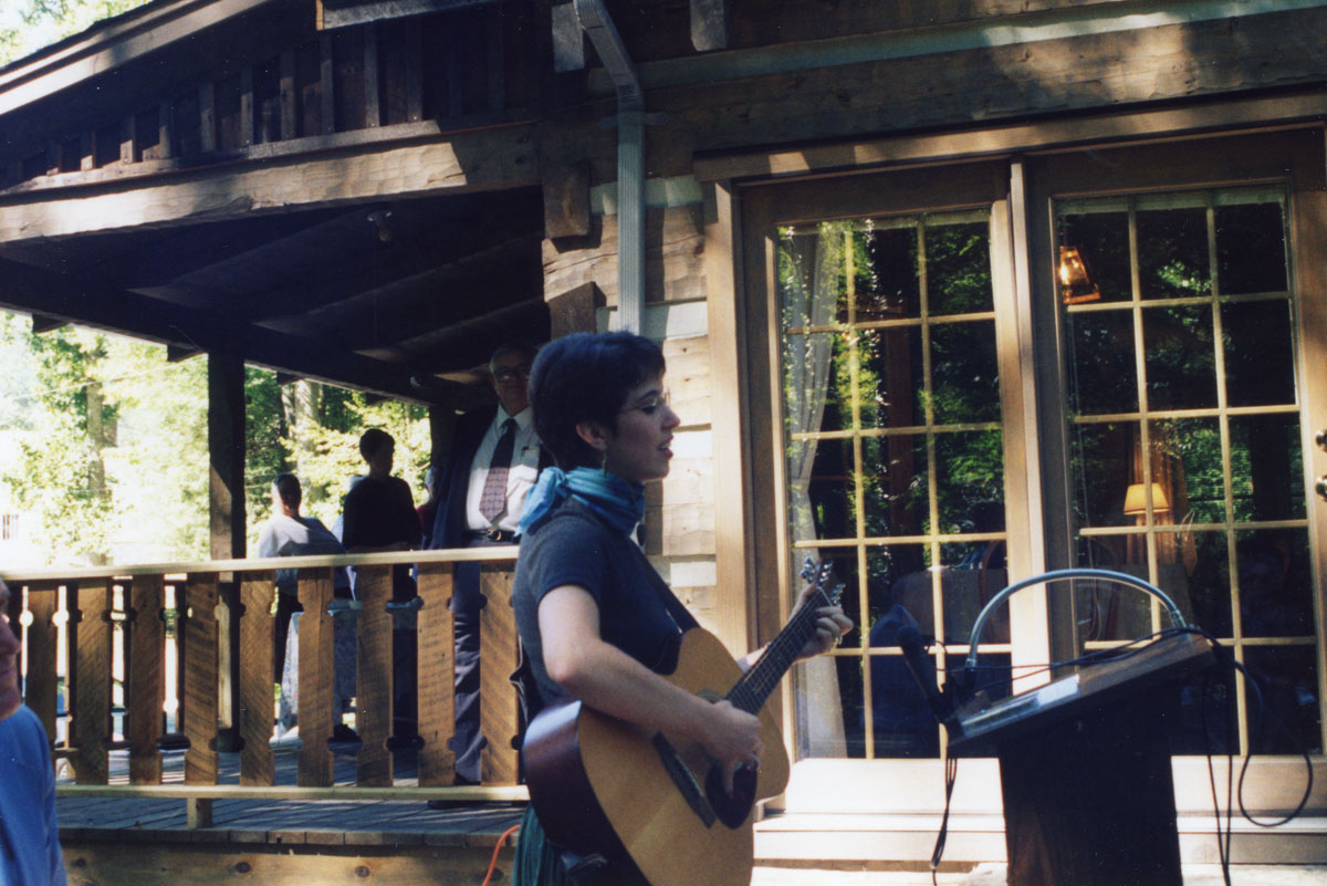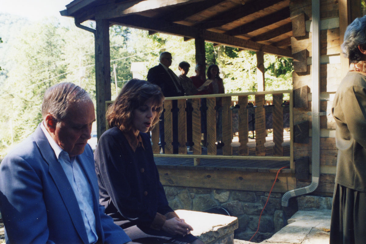 - 06 Jennifer Rose singing an original song, “Pine Mountain Lullaby.” (Trustee Bill Leach is on porch behind her.) September 27, 1997. [Far-House-II-Dedication_006.jpg]
