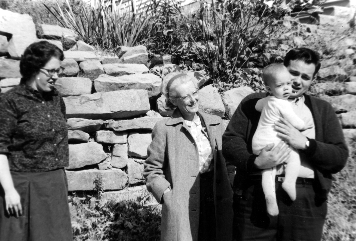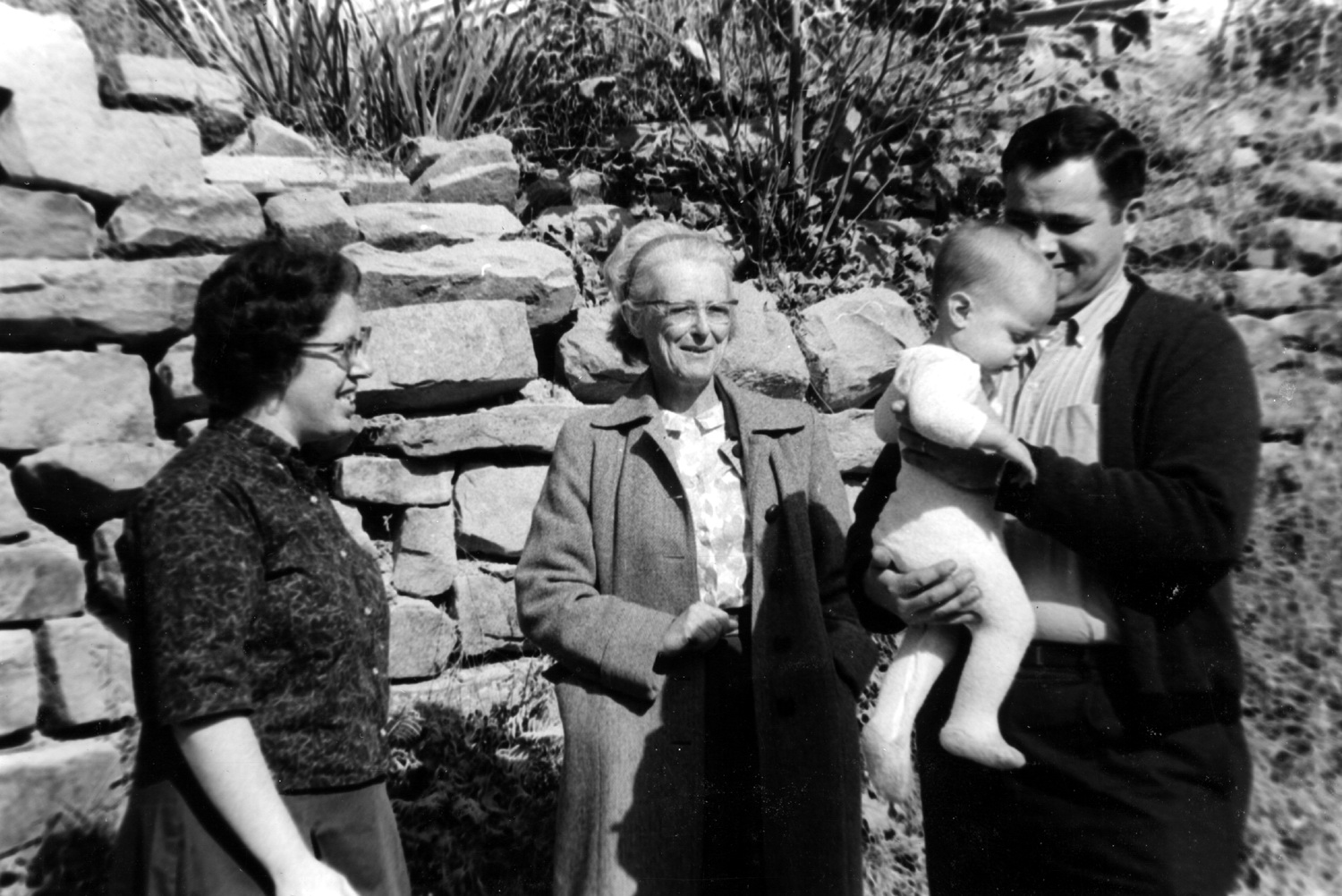 - Marian Leach, Mary Rogers, Bill Leach and child. VI-51 – 1669. [VI_51_friends_neighbors_1669_mod.jpg]