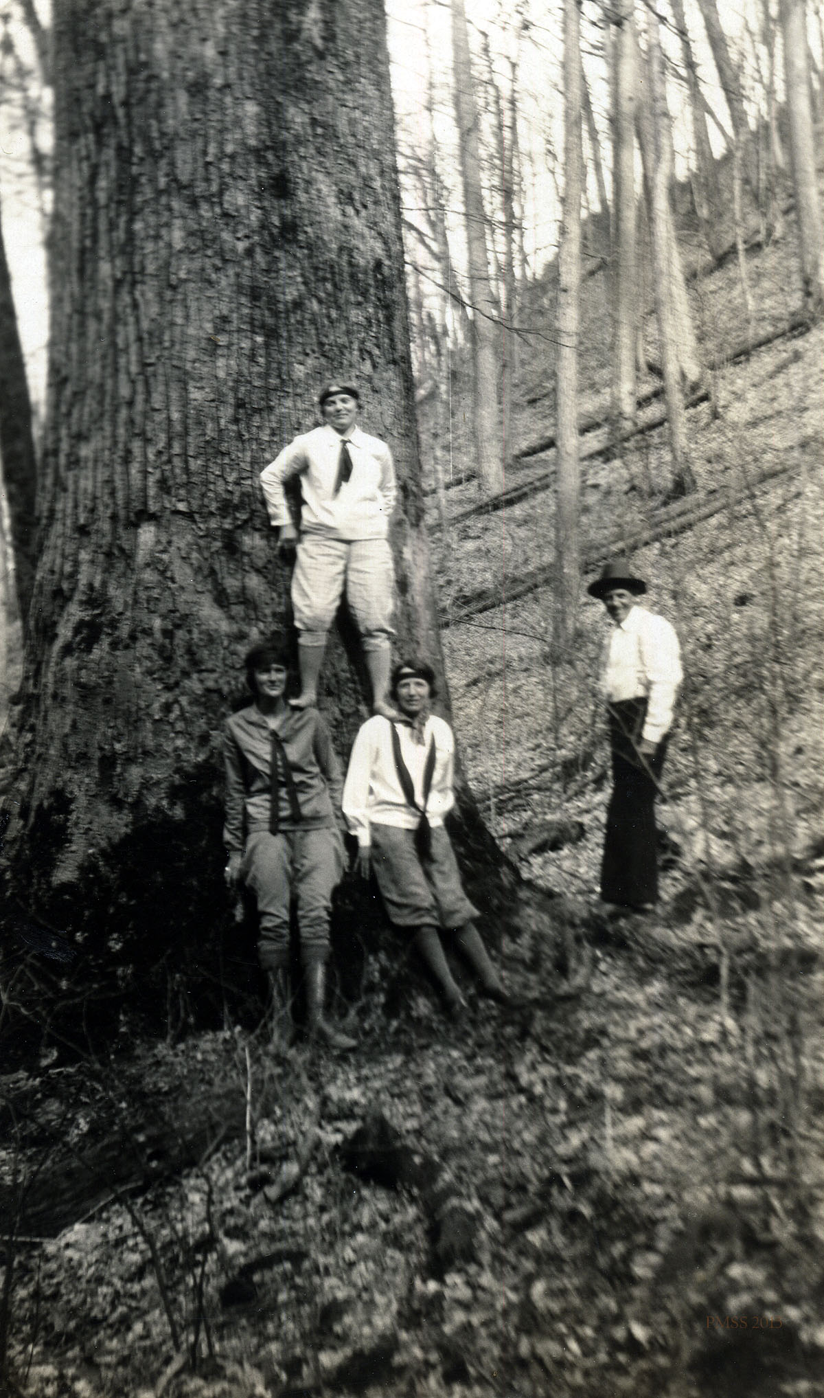 - 053c P. Roettinger Album. “The giant yellow poplar. Columbus [Creech] and Lizzie.” [Elisabeth Roettinger] at left and man at right at base of tree.] [roe_053c.jpg]