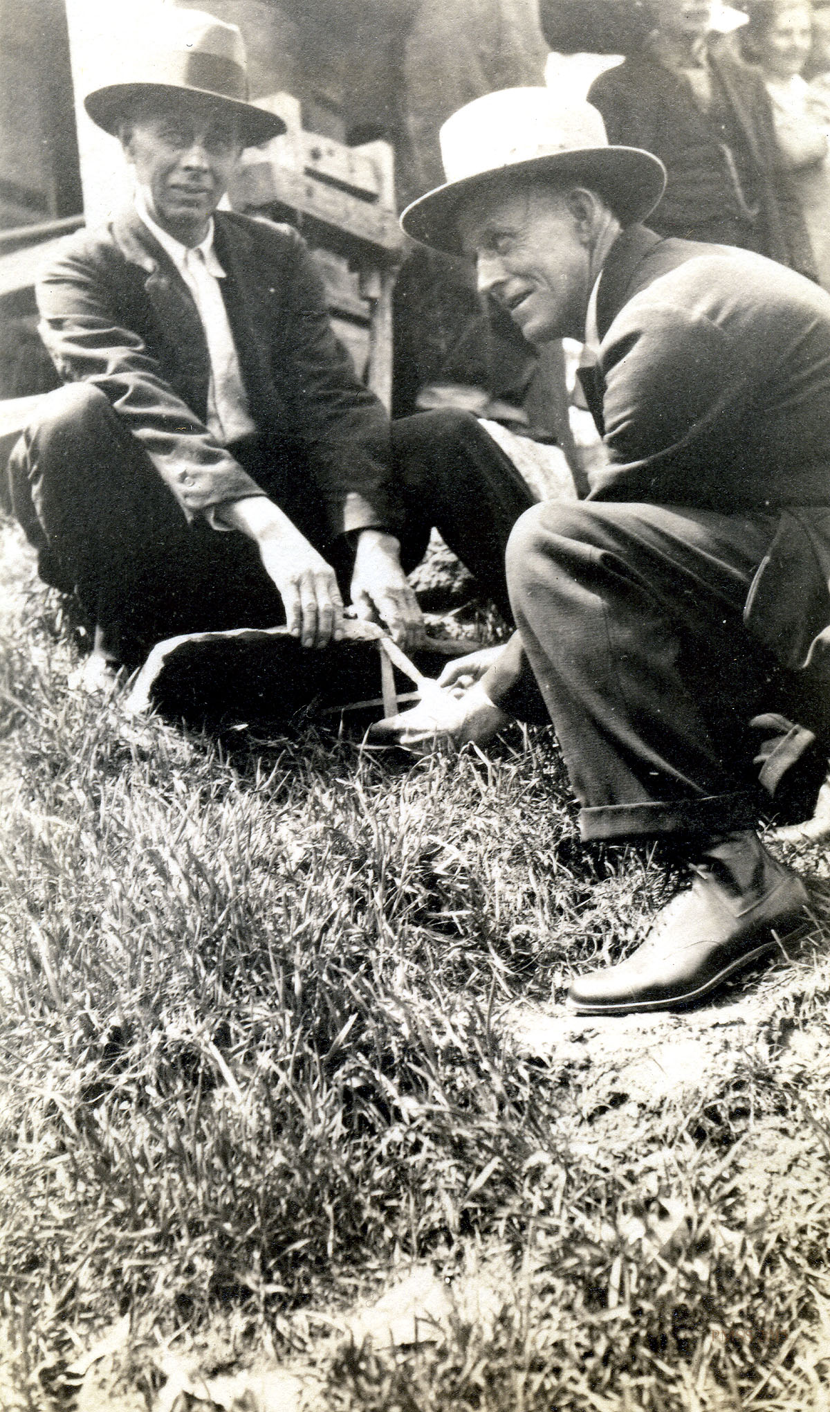 - “Henry and Columbus Creech” demonstrating a dead-fall trap. [kingman_009b.jpg]