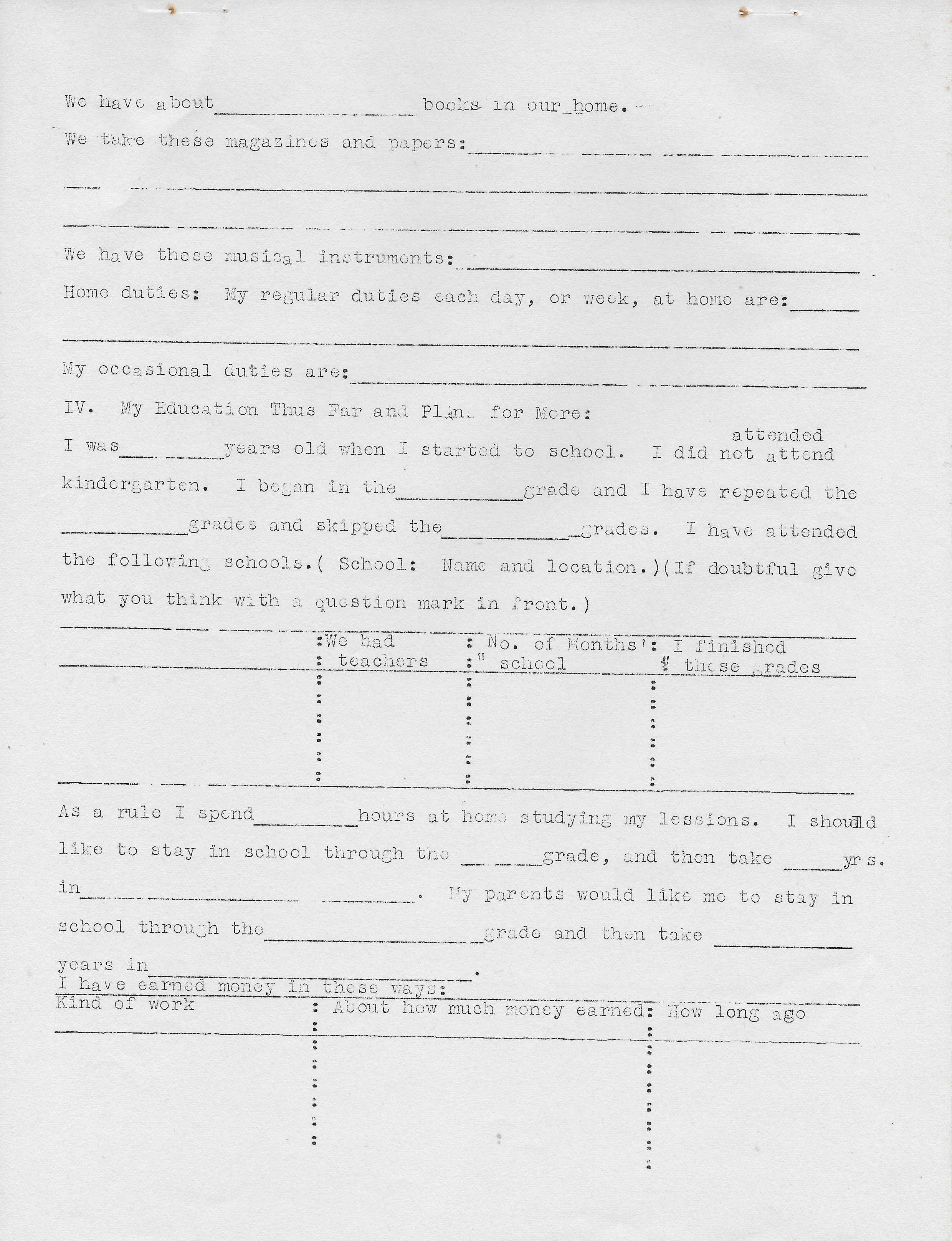 TAGS: Quinten Wooton, Wooton Family, Hansford Wooton, Student Application Blanks, Home and Parents Records, self-evaluation letters, student autobiography blanks, Stanford Achievement Tests, Work Reports, physical exams, instructors’ reports, houseparent appraisals, Quinten Joseph Wooton, Quentin Wooten (sic)